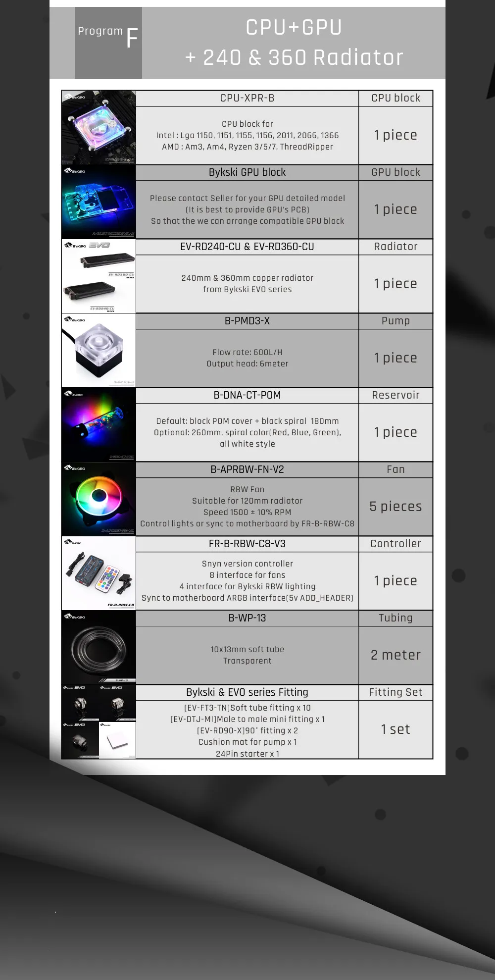 Bykski B-HSRBW-ED, наборы программных программ с мягкой трубкой 5 В, 3 контакта, несколько программ, Настраиваемые модификации для комплекта охлаждения IntelAMD, радиатор