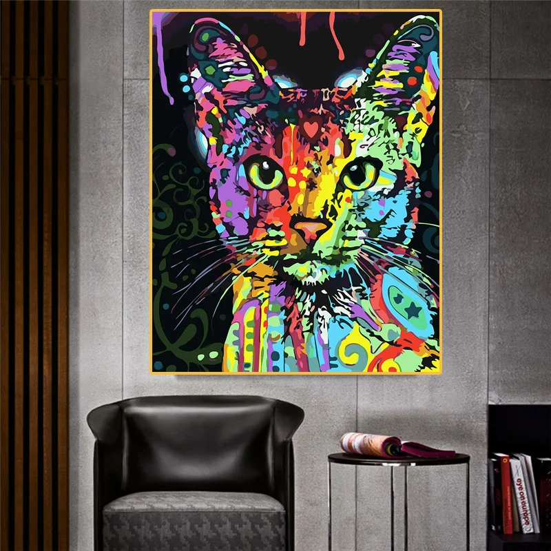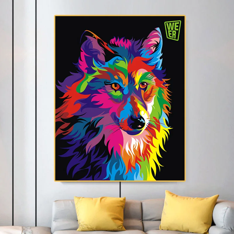 Акварельный лев кошка волк настенное искусство холст Абстрактные животные Лев поп граффити картины Куадрос картина для детской комнаты декор