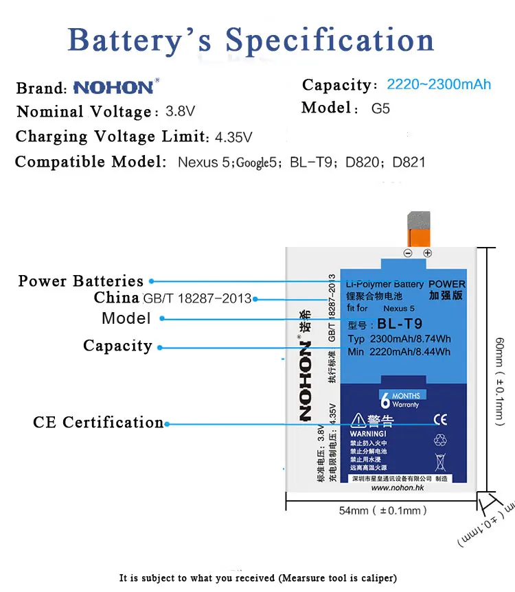 Suitable Model5For Nexus5 BL-T9 2300mAh
