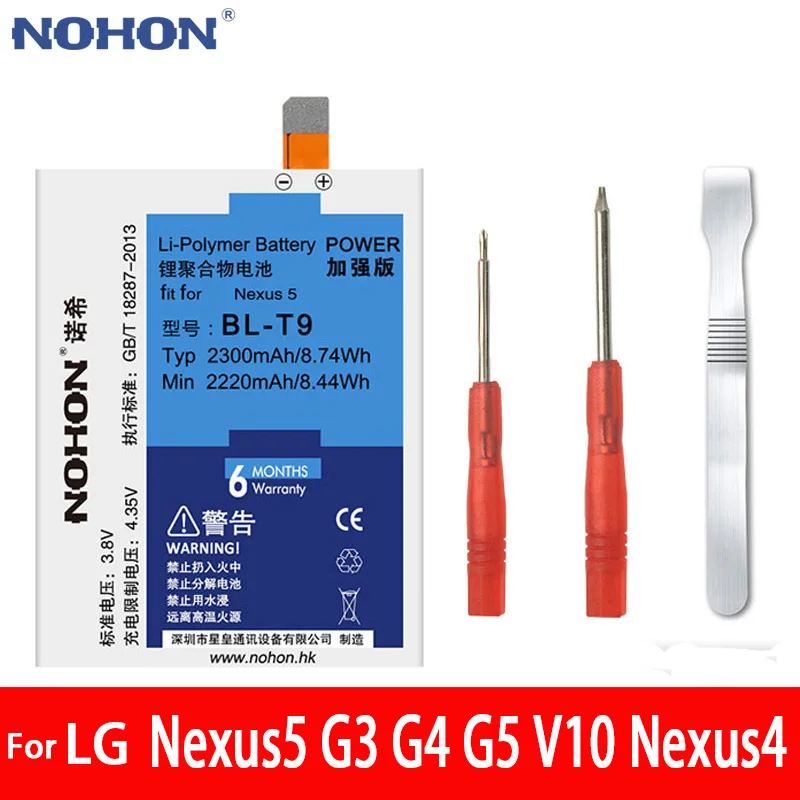 Оригинальный NOHON Батарея для LG G4 G3 G5 V10 Google Nexus 5 BL-53...