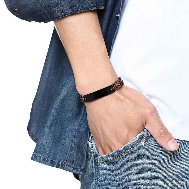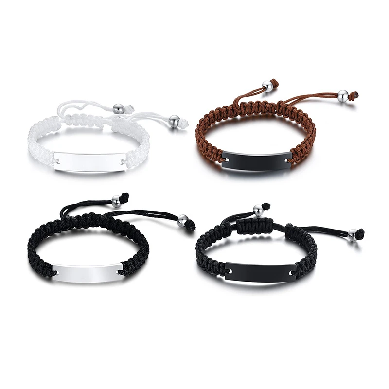 Женские и мужские браслеты на заказ, плетеные браслеты сделай сам с гравировкой, регулируемые плетеные веревочные браслеты ручной работы, персонализированные браслеты на День святого Валентина