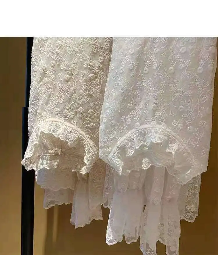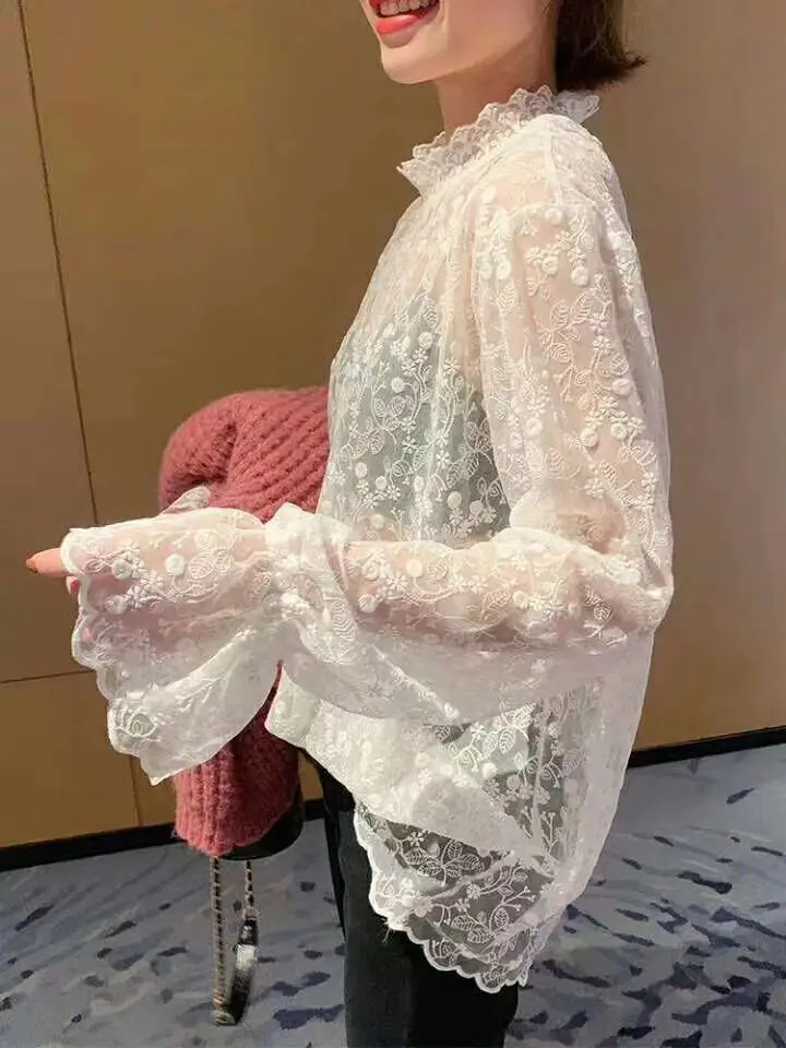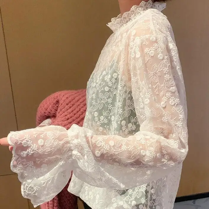 Heydress Прозрачная женская сетчатая Прозрачная Сексуальная Цветочная кружевная блузка с расклешенным рукавом черная белая прозрачная рубашка женские офисные Топы