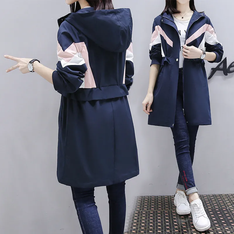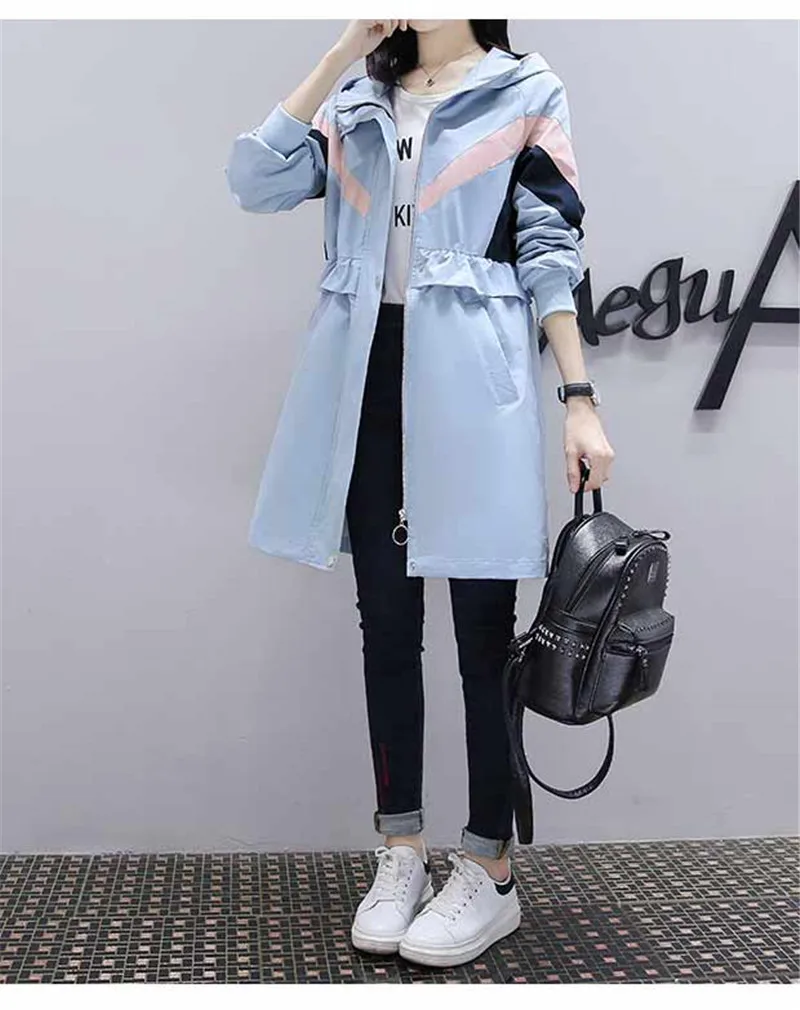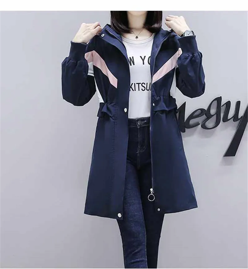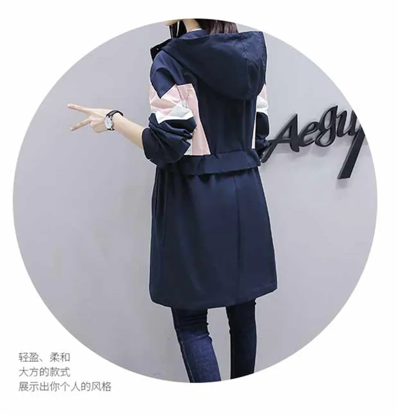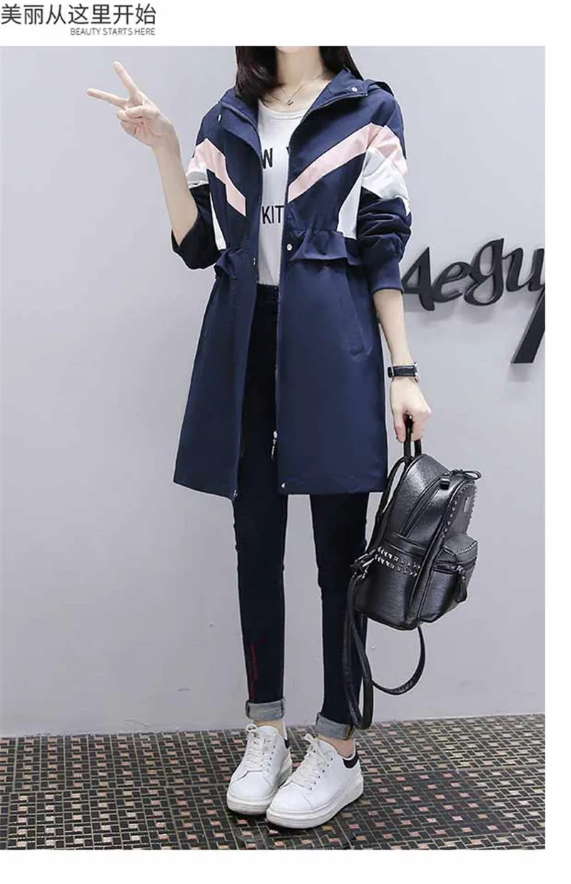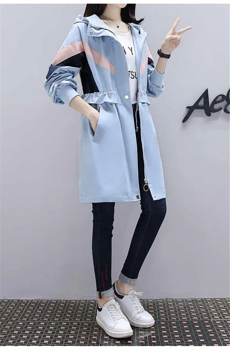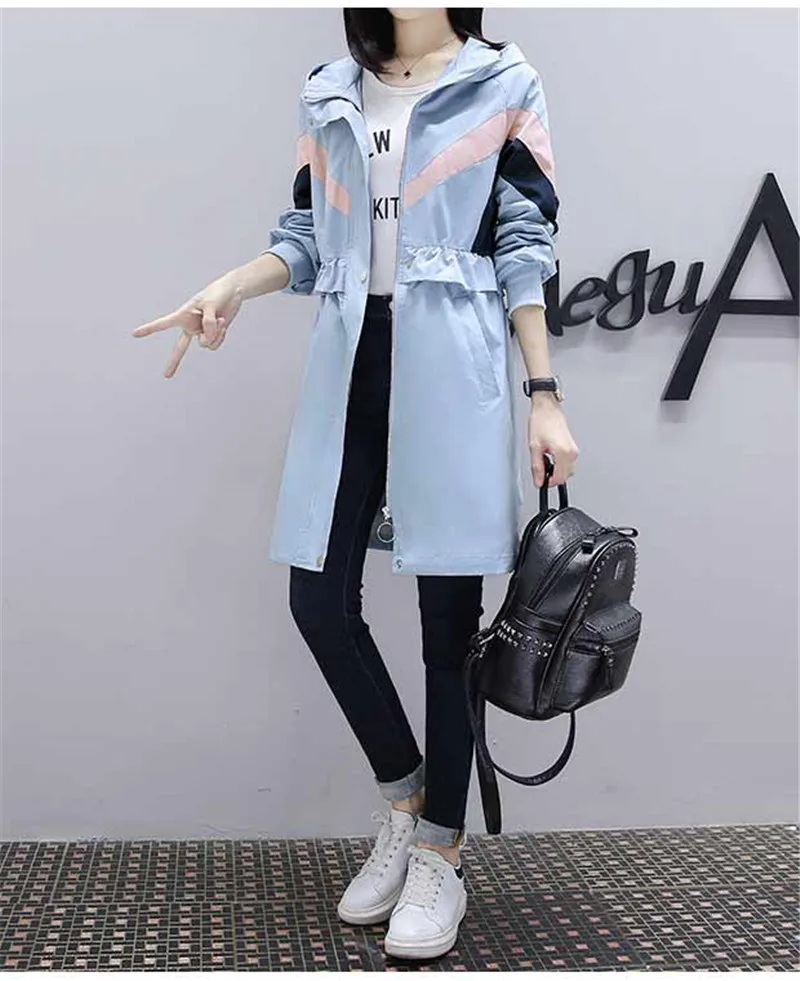 Тренчкот женский с длинным рукавом, модная Повседневная ветровка с капюшоном, длинная верхняя одежда, M243, весна-осень 2020