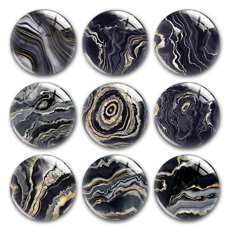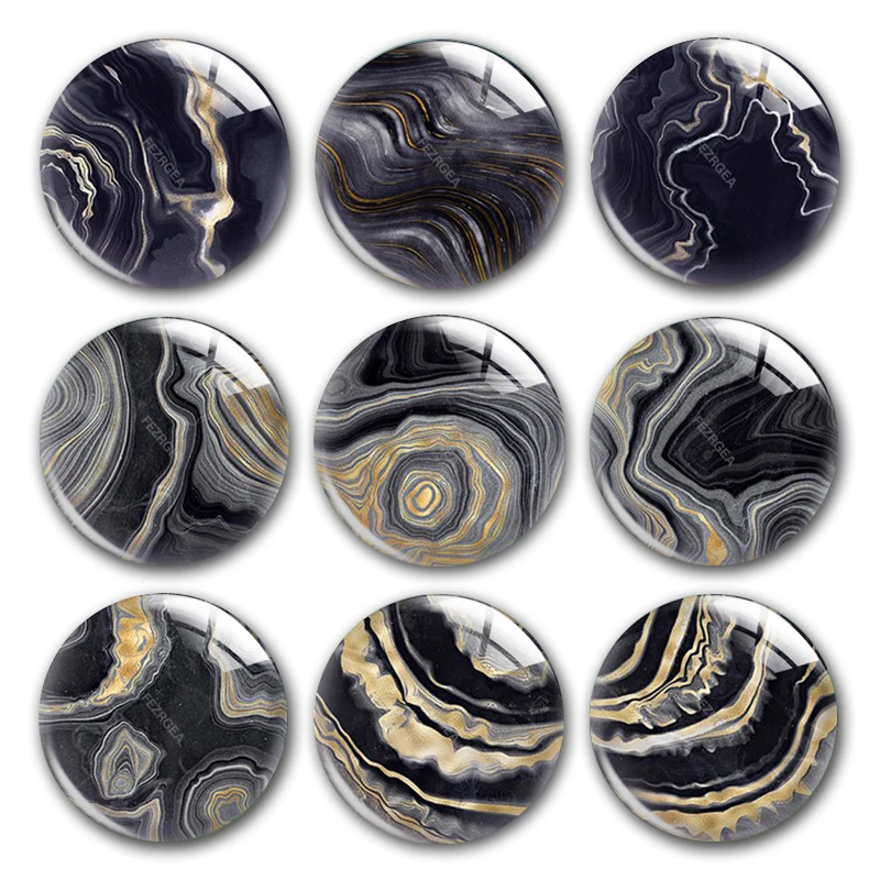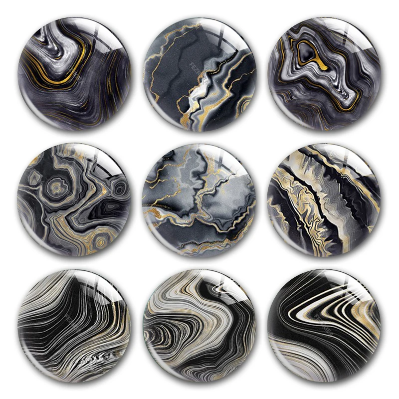 Ручная работа, черные, темно-серые, желтые мраморные узоры, круглые фото, кабошоны, демонстрация, плоская задняя часть, сделай сам, колье, ювелирные изделия