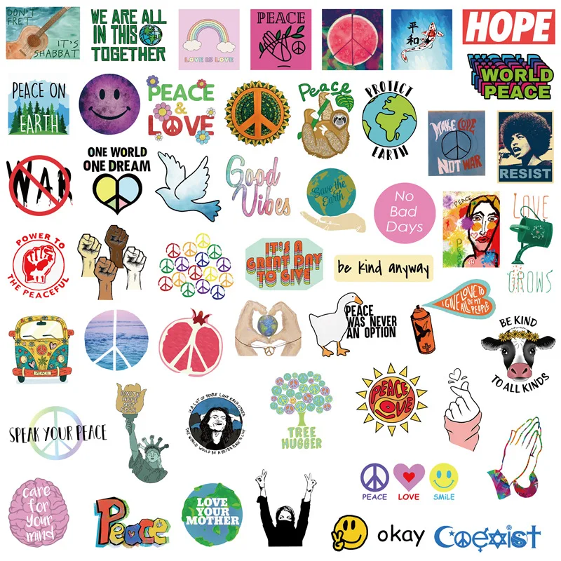 50 шт.упак. стикеры в стиле ретро хиппи любовь и мир для мотоцикла ноутбука чемодан скейтборд ПВХ водонепроницаемый дневник Канцтовары LD