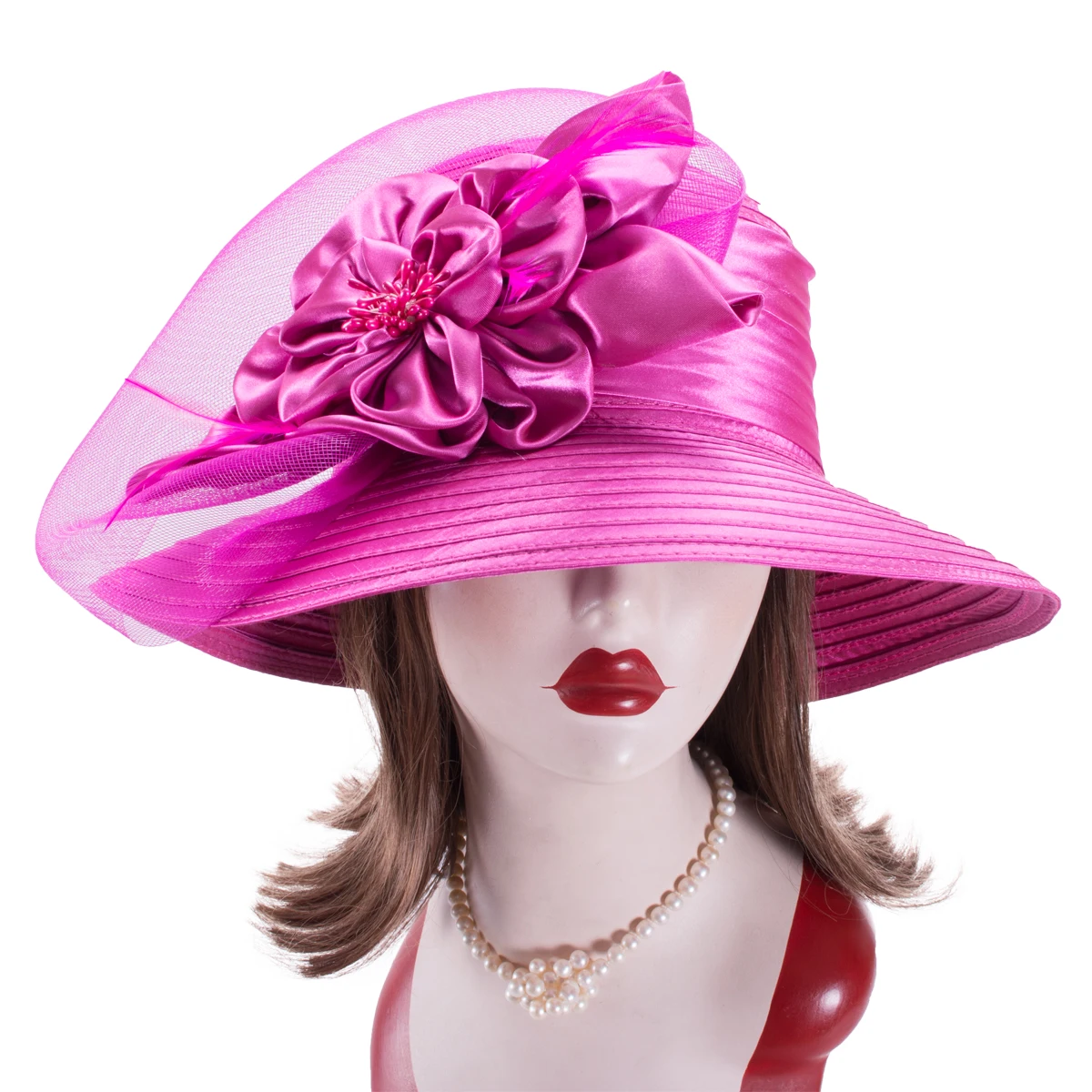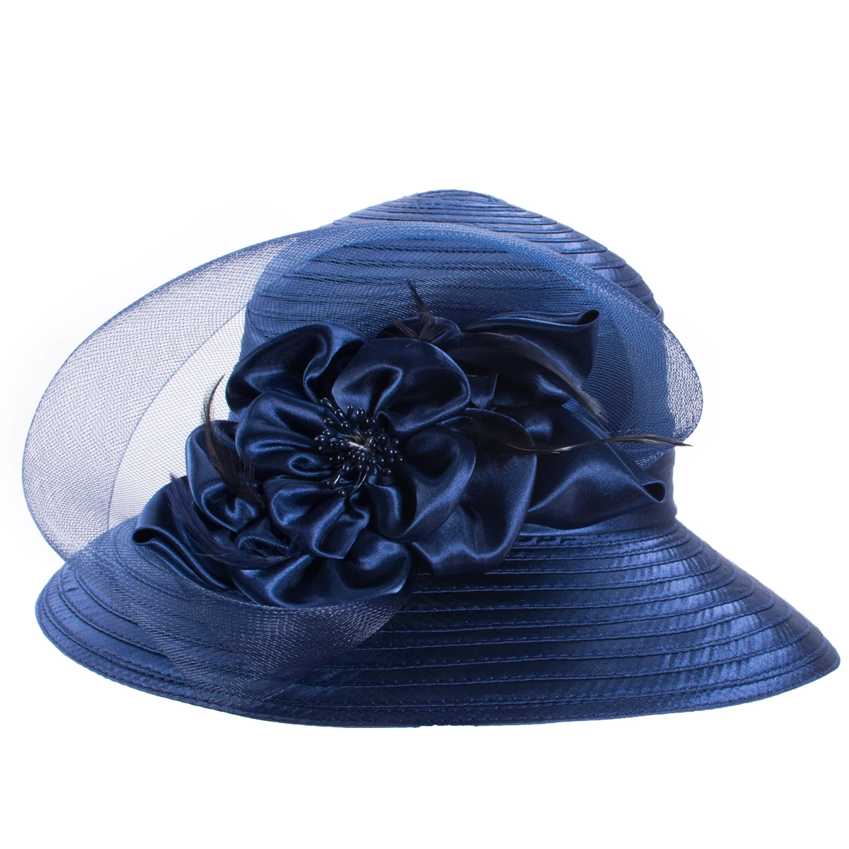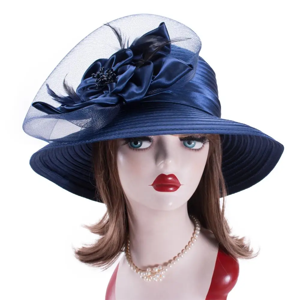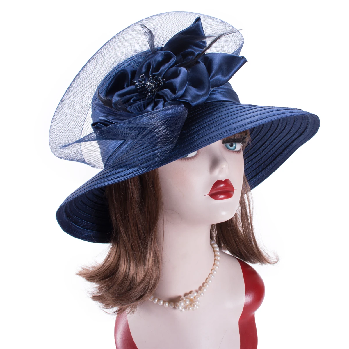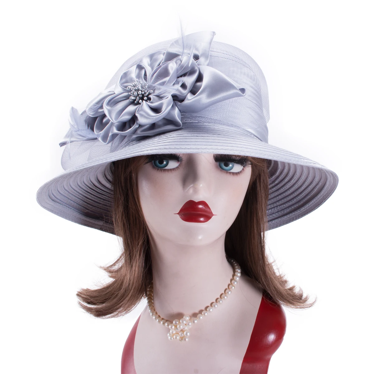 Женская атласная шляпка Lawliet, шляпа от солнца и солнца с лентой для церкви и свадьбы, A578