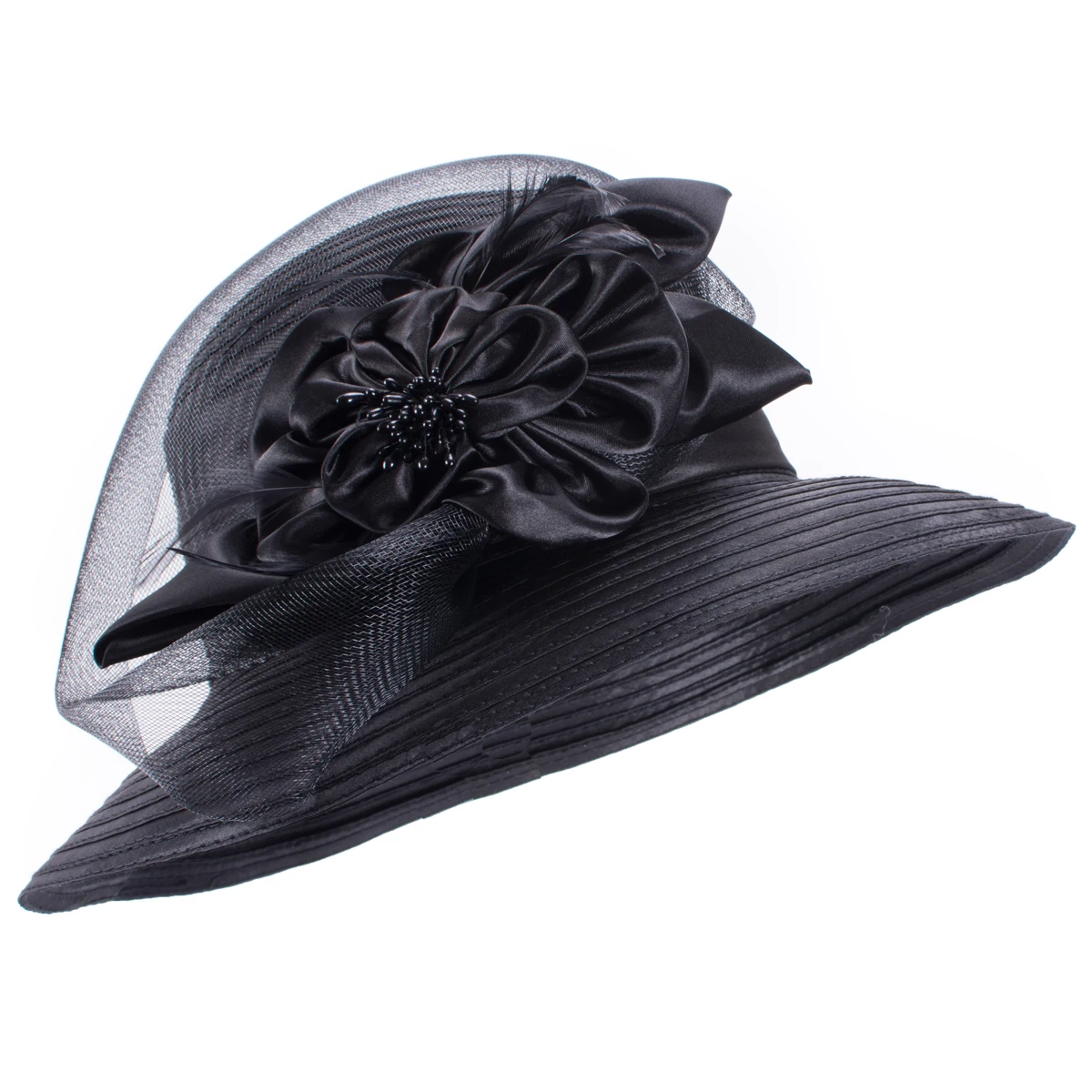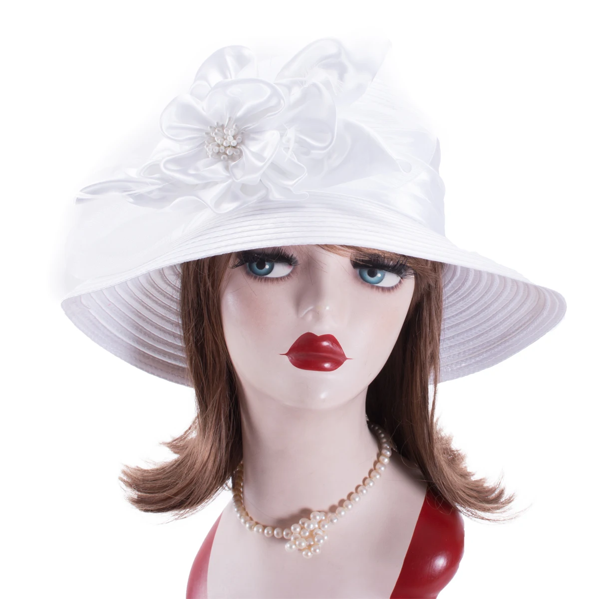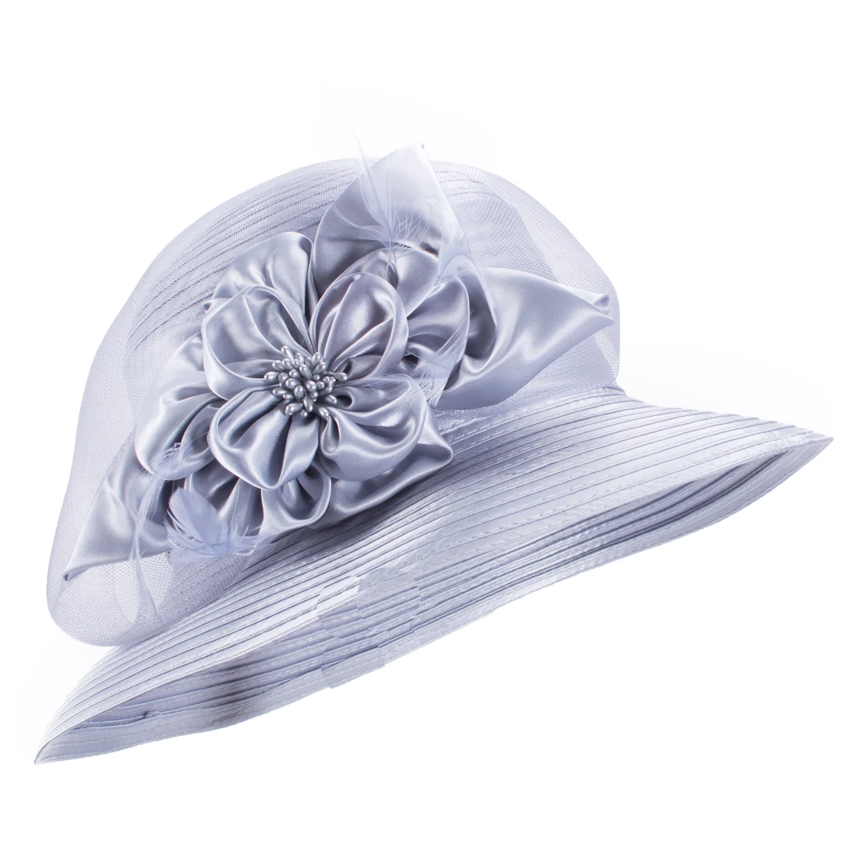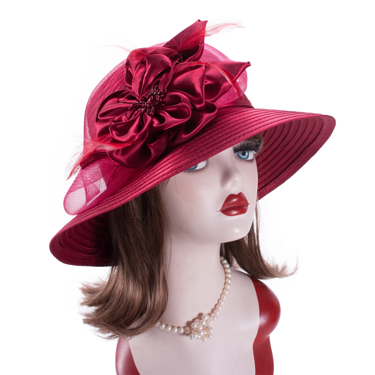 Женская атласная шляпка Lawliet, шляпа от солнца и солнца с лентой для церкви и свадьбы, A578