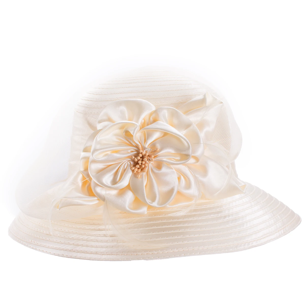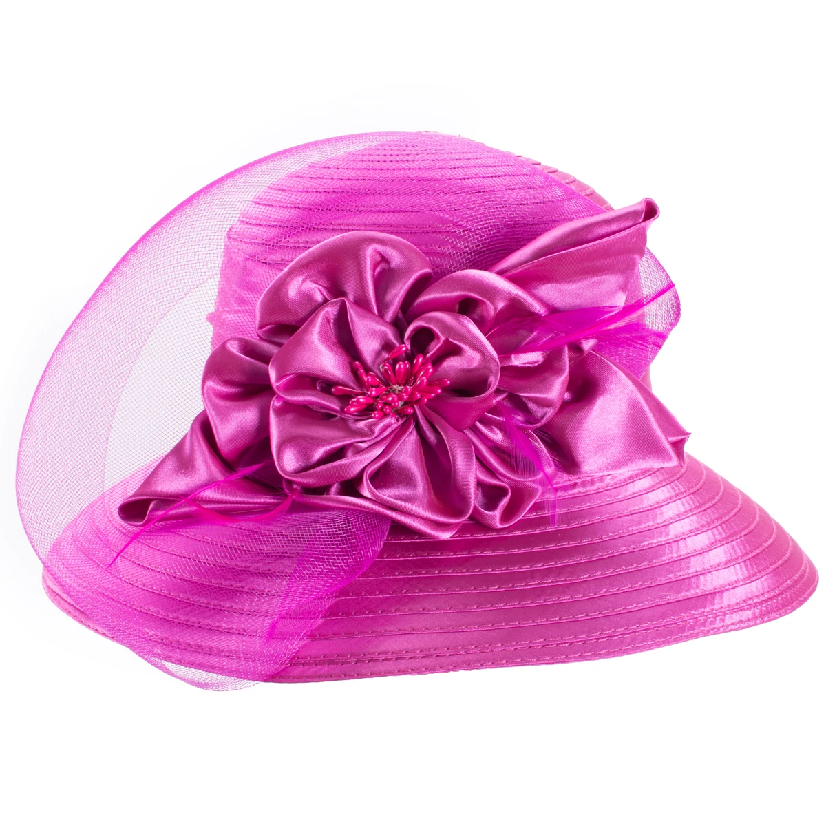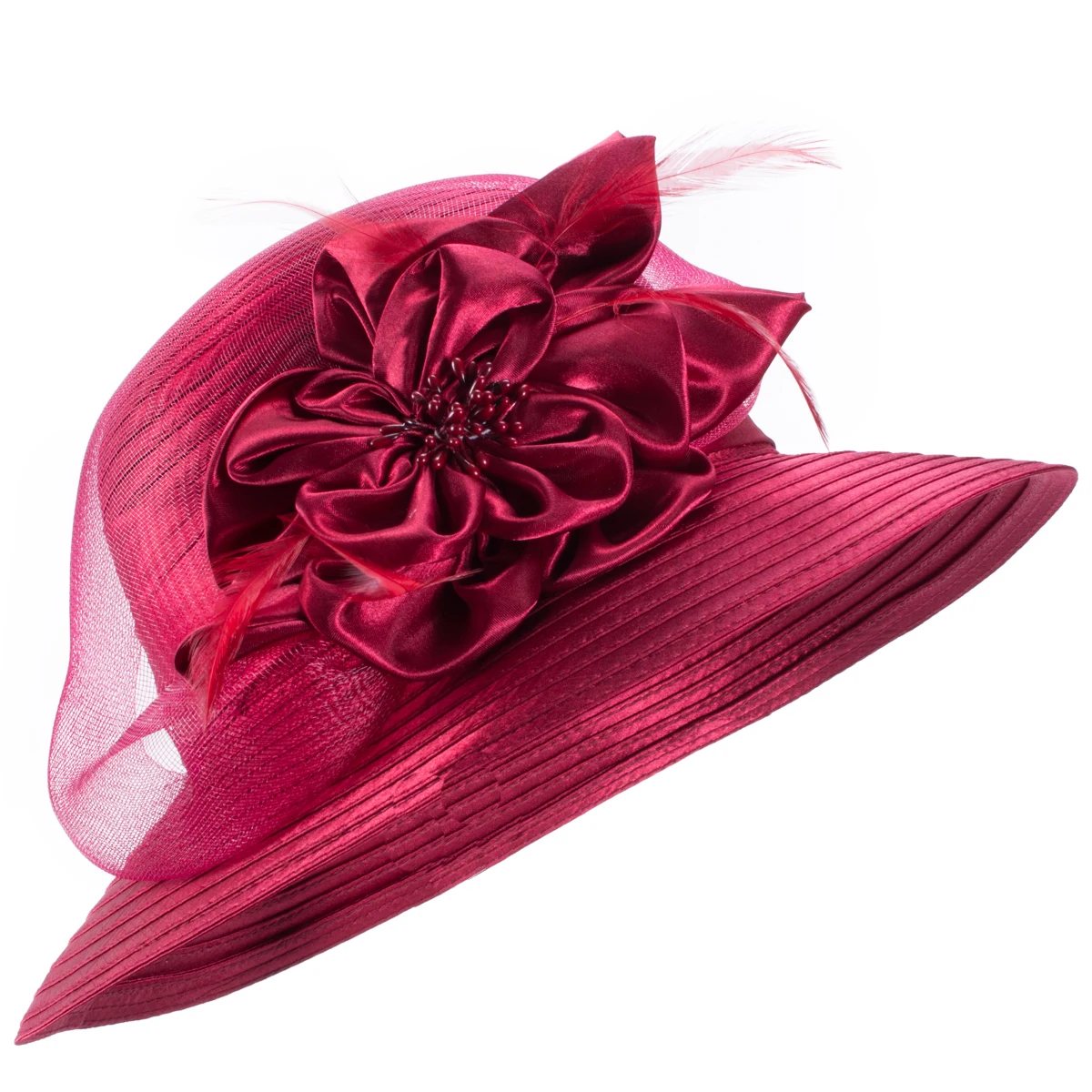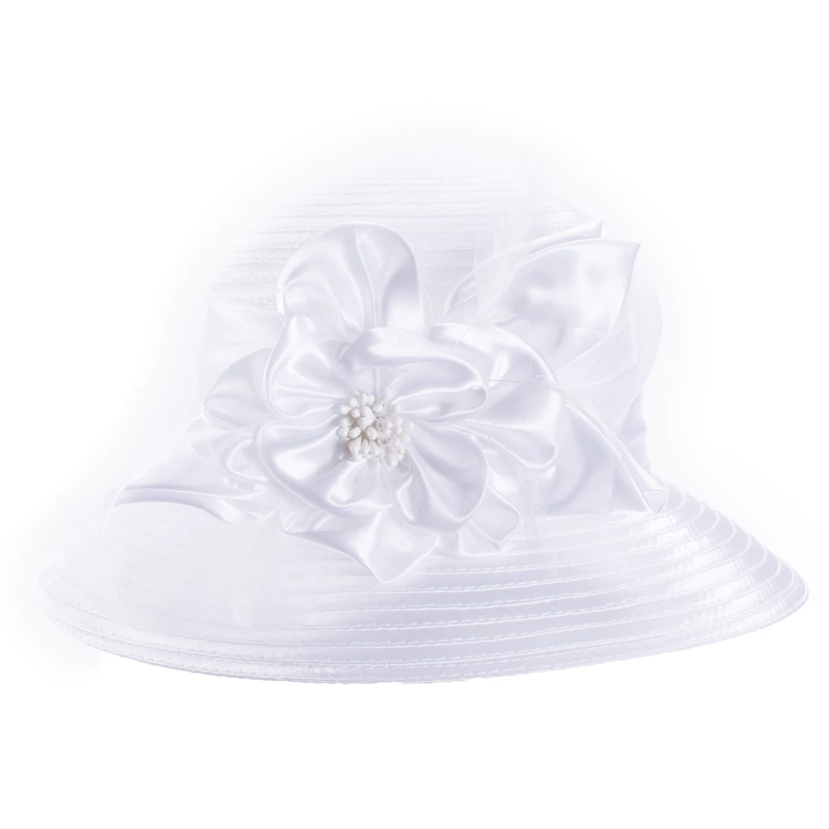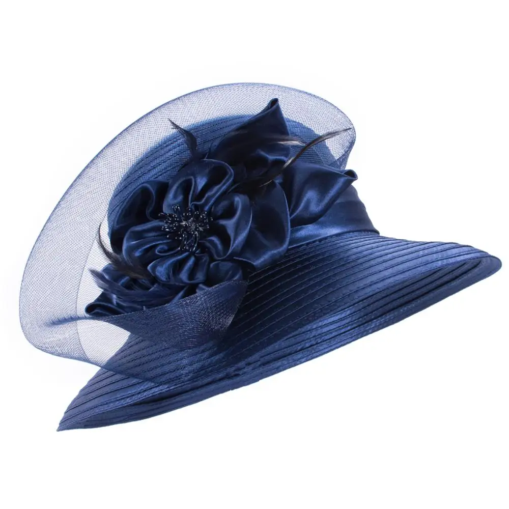 Женская атласная шляпка Lawliet, шляпа от солнца и солнца с лентой для церкви и свадьбы, A578