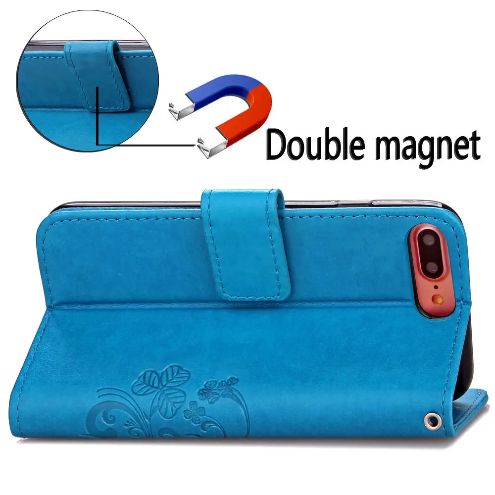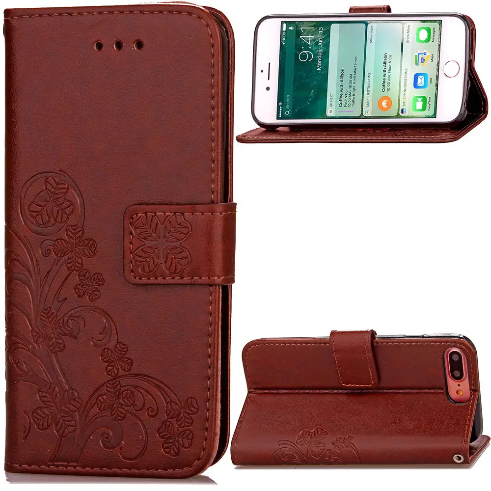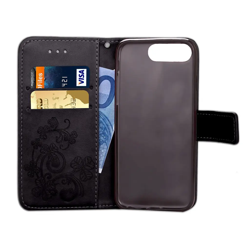 6. Роскошный модный прочный кожаный чехол-бумажник с откидной крышкой и отделением для карт и подставкой