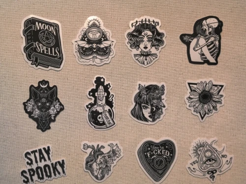 Красивые стикеры, просто кладезь идей для тату. Не боятся воды, можно клеить на что нибудь на улице