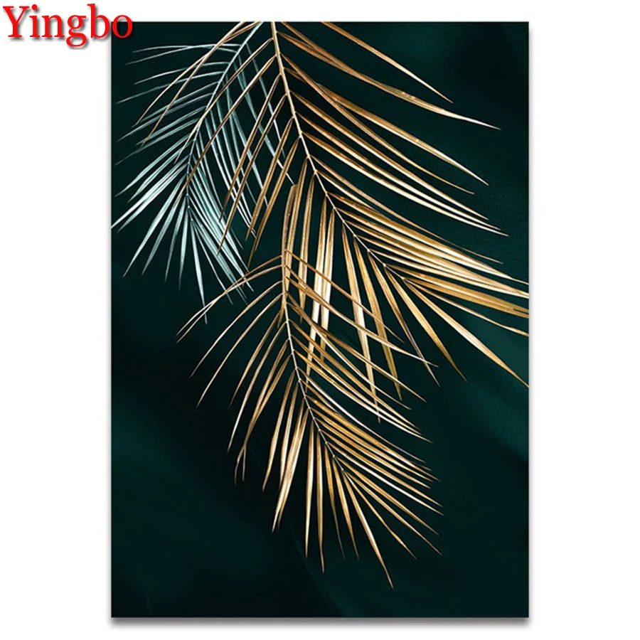 Золотые листья растений DIY квадратная круглая Алмазная вышивка 5D DIY Алмазная мозаика Алмазная Живопись Вышивка крестом горный хрусталь Искусство