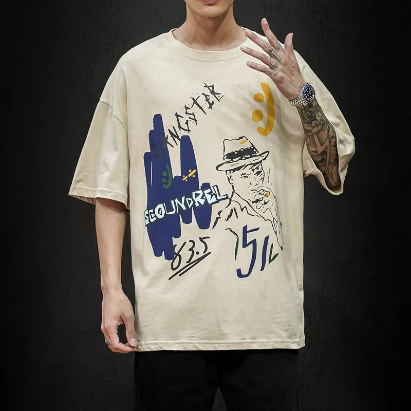 Летняя мужская футболка с коротким рукавом LIFENWENNA, модные футболки с принтом граффити и круглым вырезом, мужские повседневные футболки большого размера в стиле хип-хоп, M-5XL