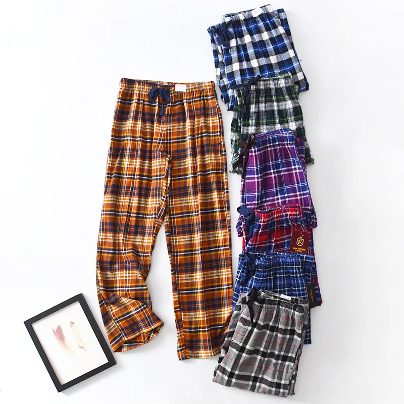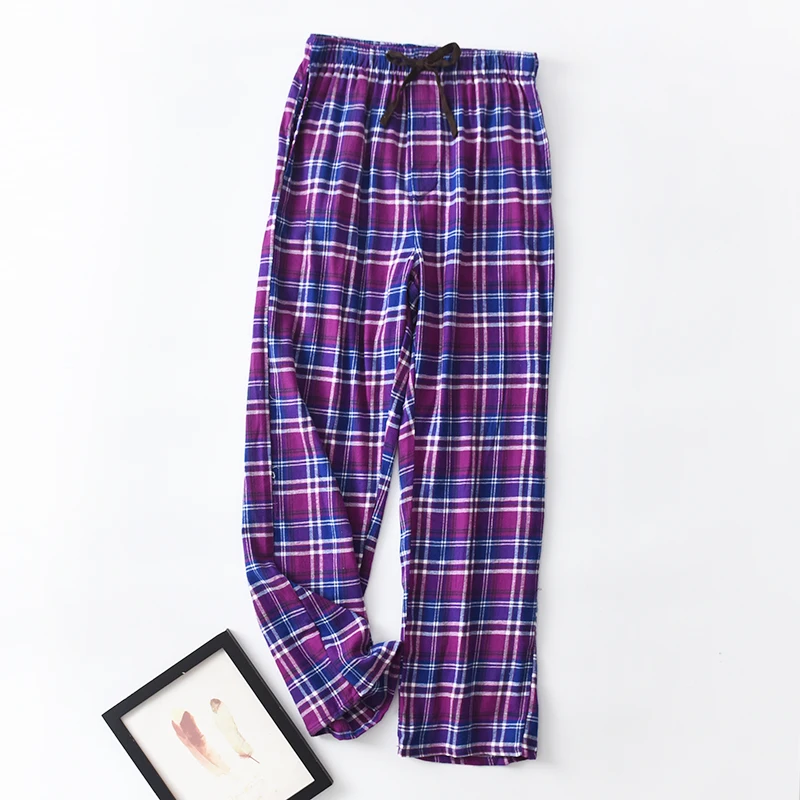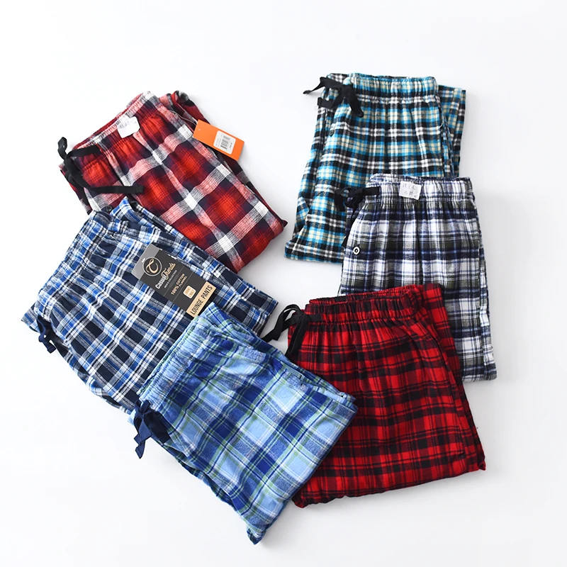 Мужские хлопковые брюки для дома, повседневные брюки в клетку размера плюс с боковыми карманами и кулиской для сна на весну и осень