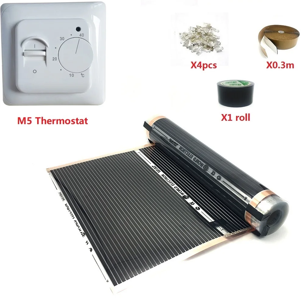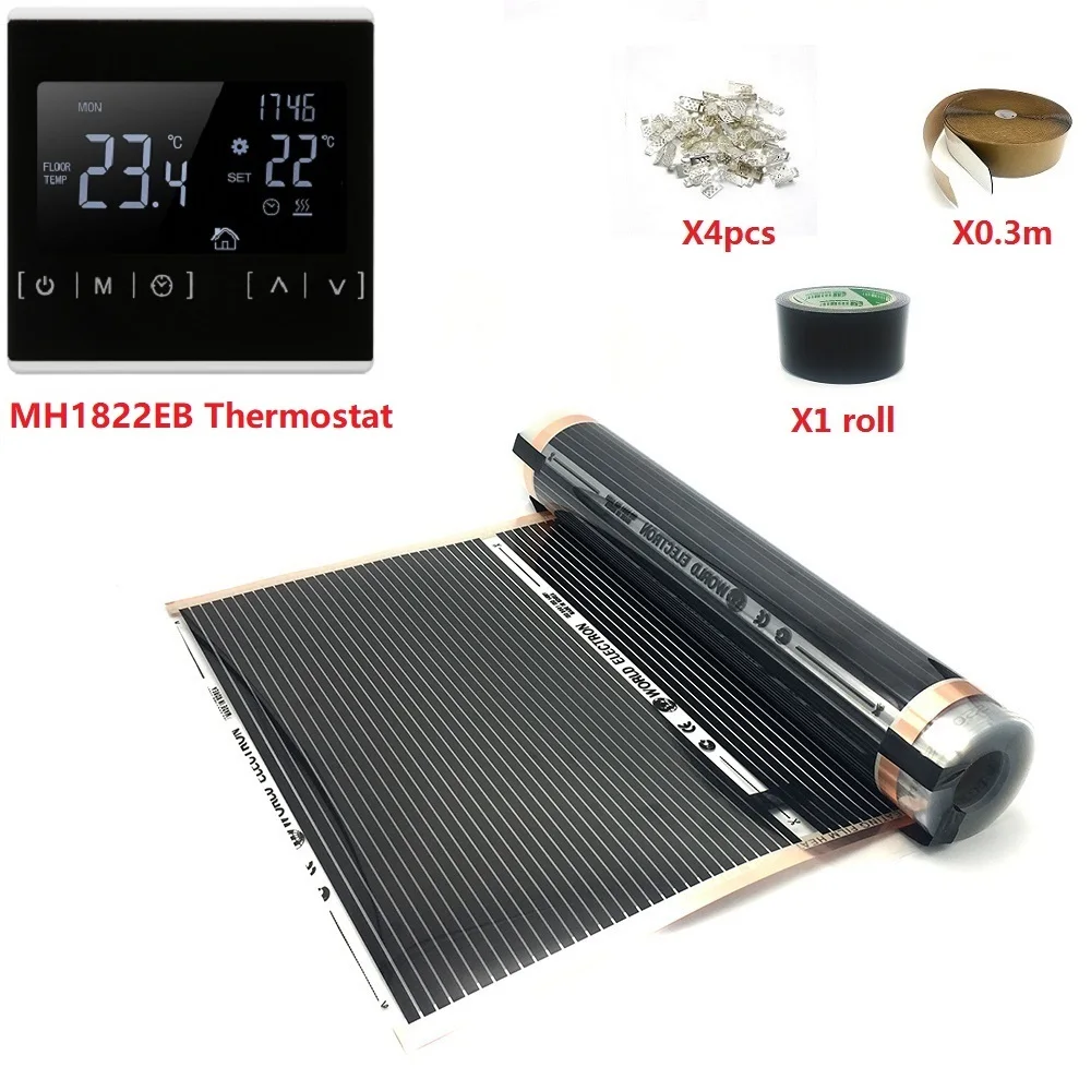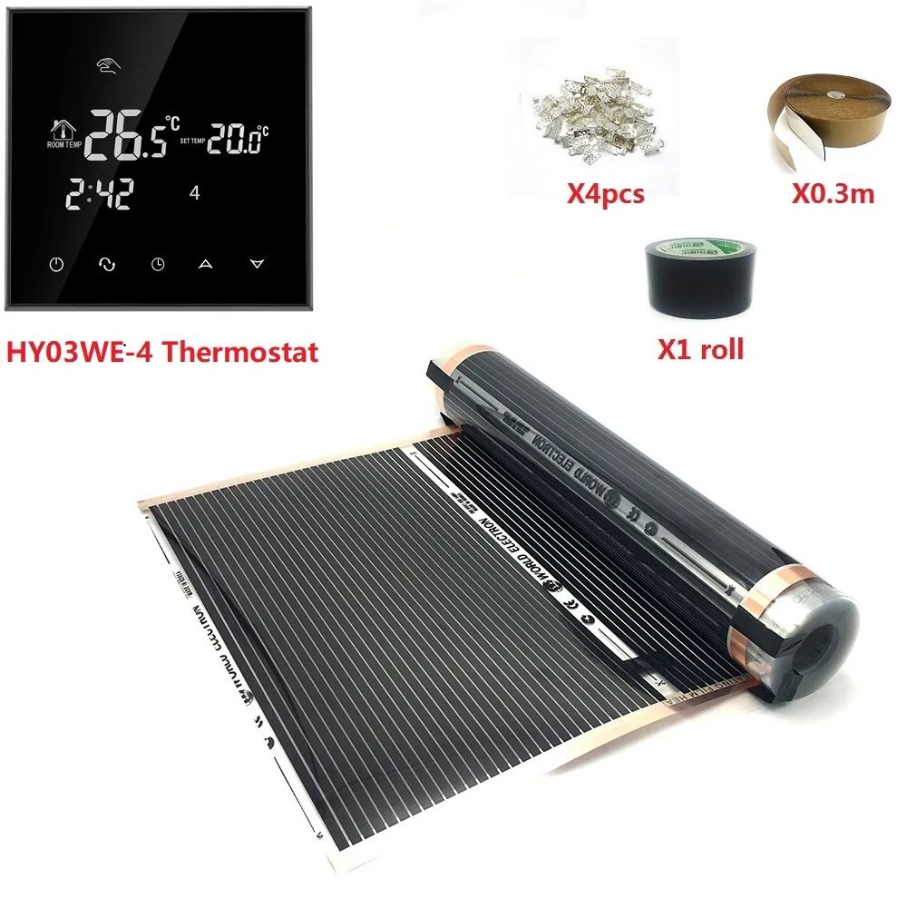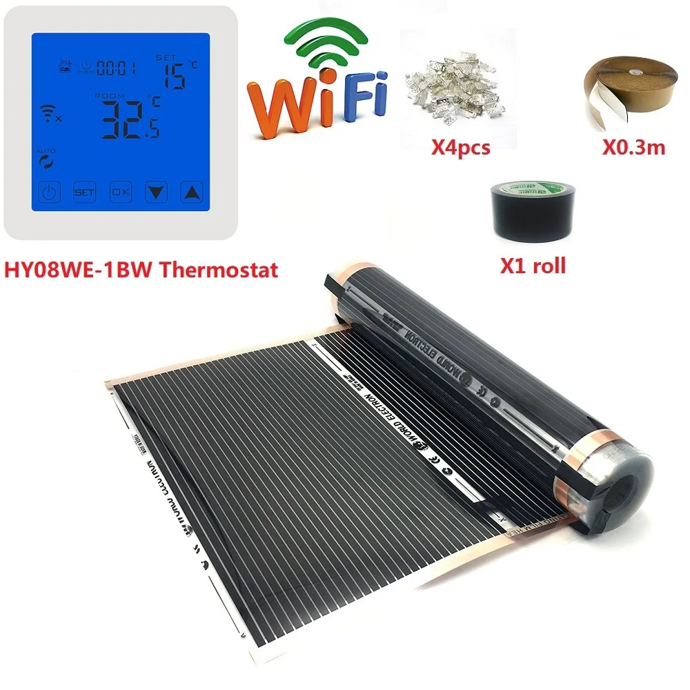 50cmX2m инфракрасная напольная нагревательная пленка, теплый напольный коврик, наборы с WiFi термостатом, зажимы, изоляционные пасты