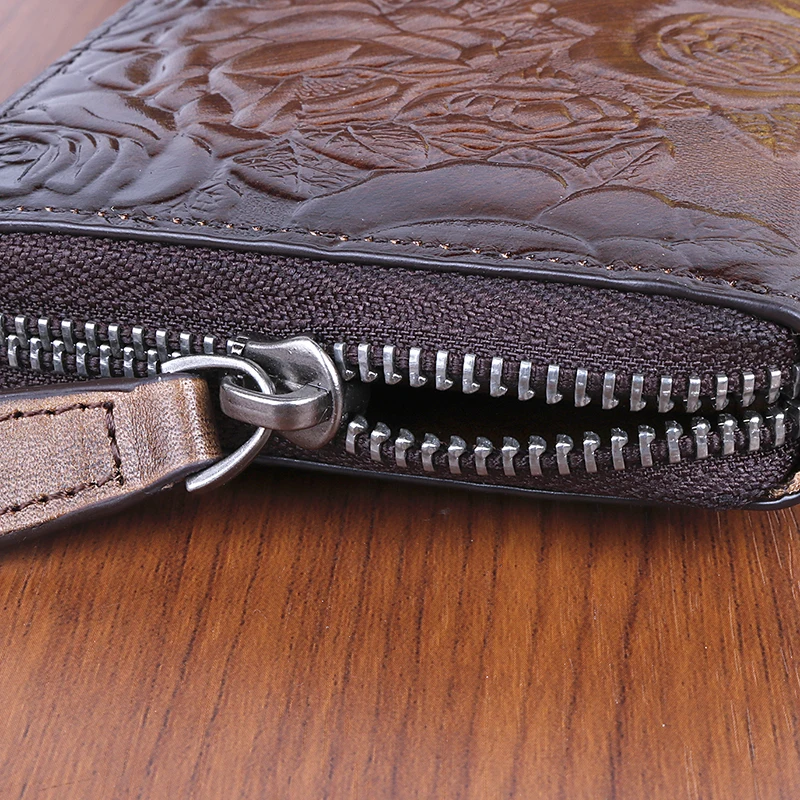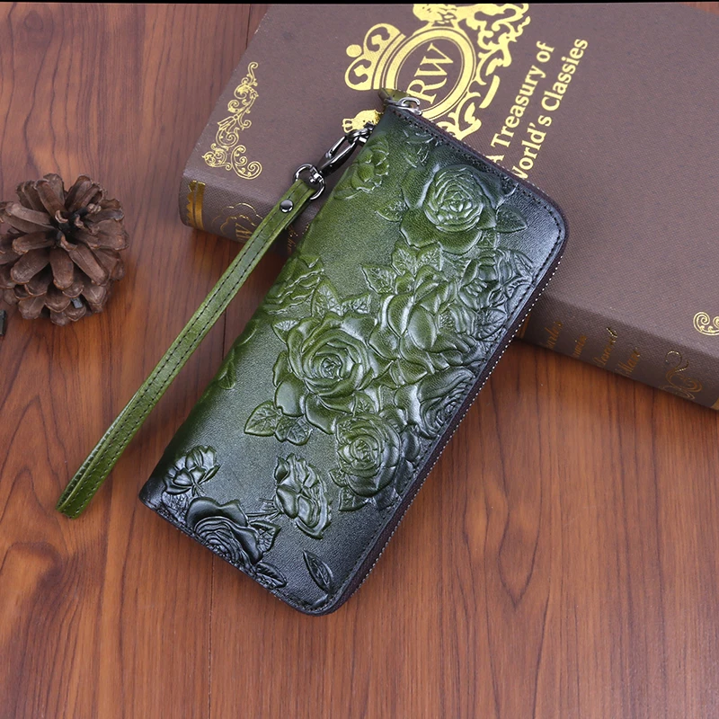 Женский кошелек из натуральной кожи, клатч с принтом розы, Длинный кошелек в стиле ретро