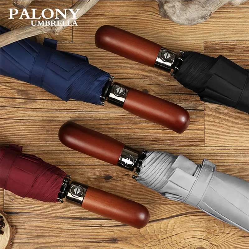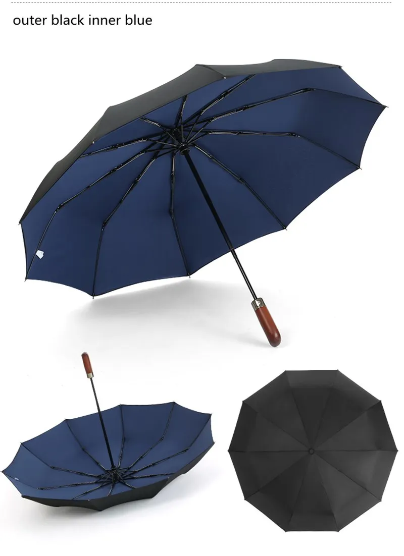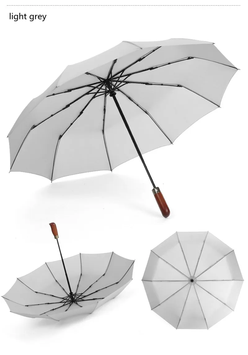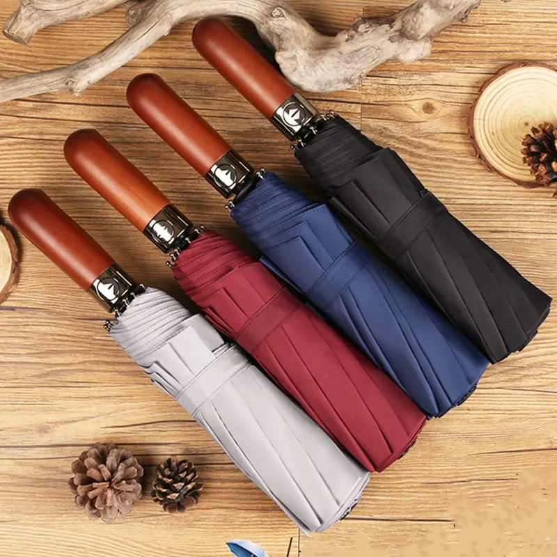 Большая прямая деревянная ручка, однослойная и двухслойная зонтичная ткань, 10 костей, автоматическая, три сложения, для мужчин и женщин, ветрозащитная, 8 цветов