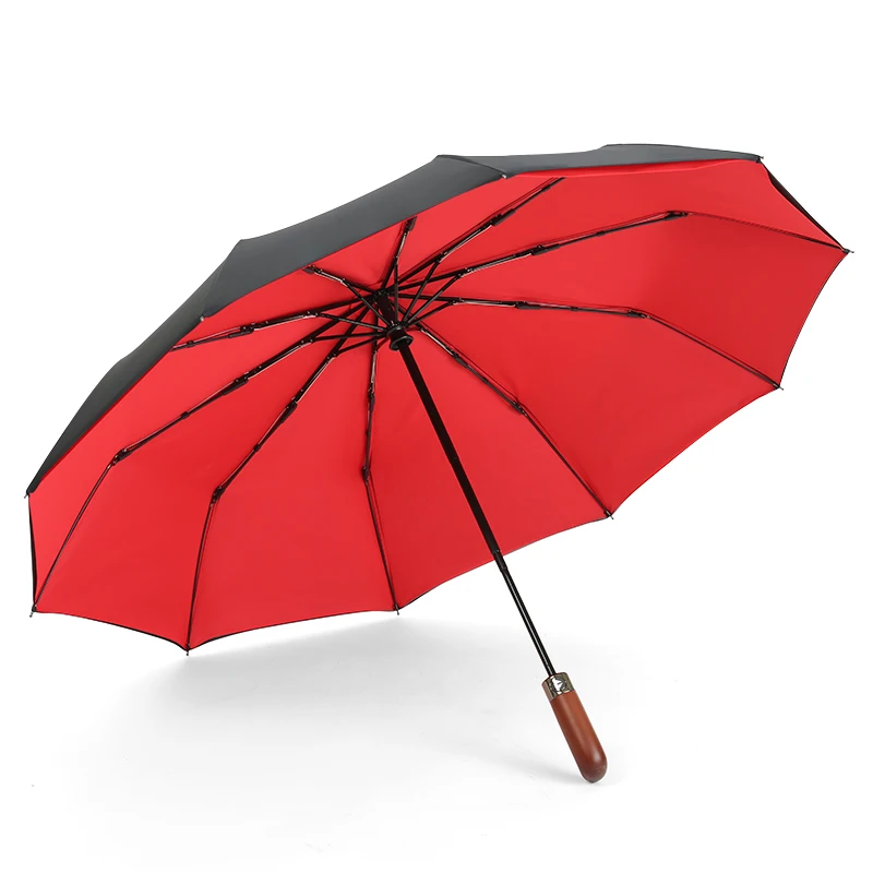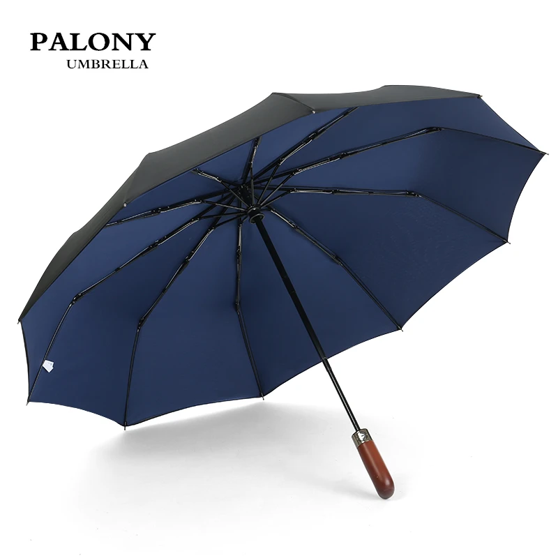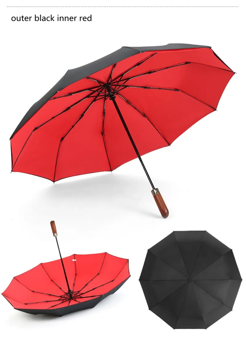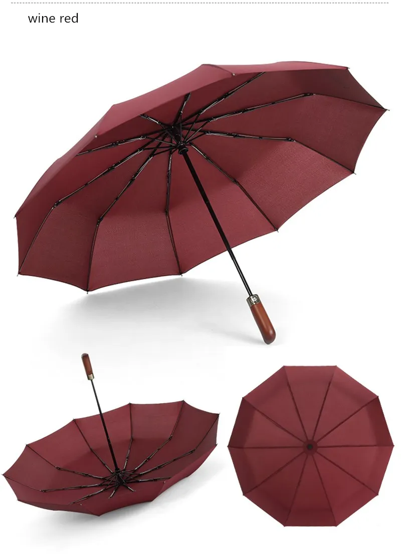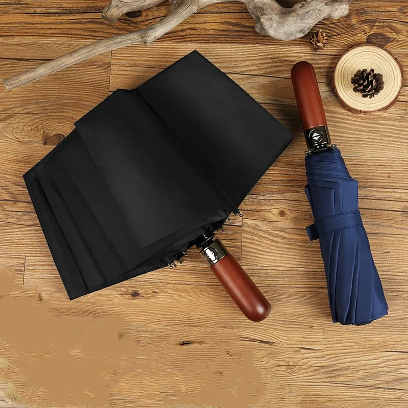 Большая прямая деревянная ручка, однослойная и двухслойная зонтичная ткань, 10 костей, автоматическая, три сложения, для мужчин и женщин, ветрозащитная, 8 цветов
