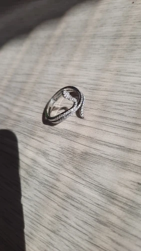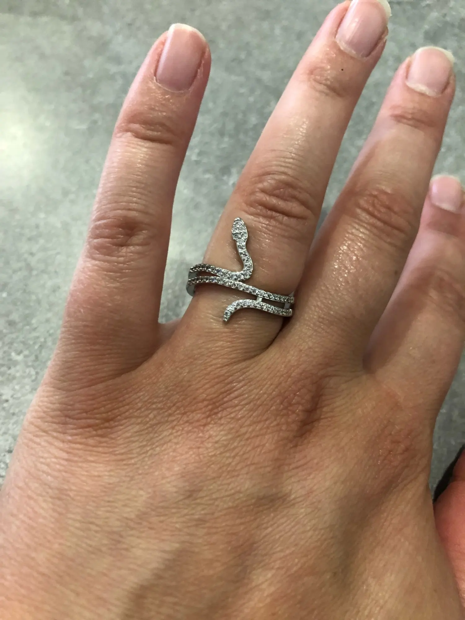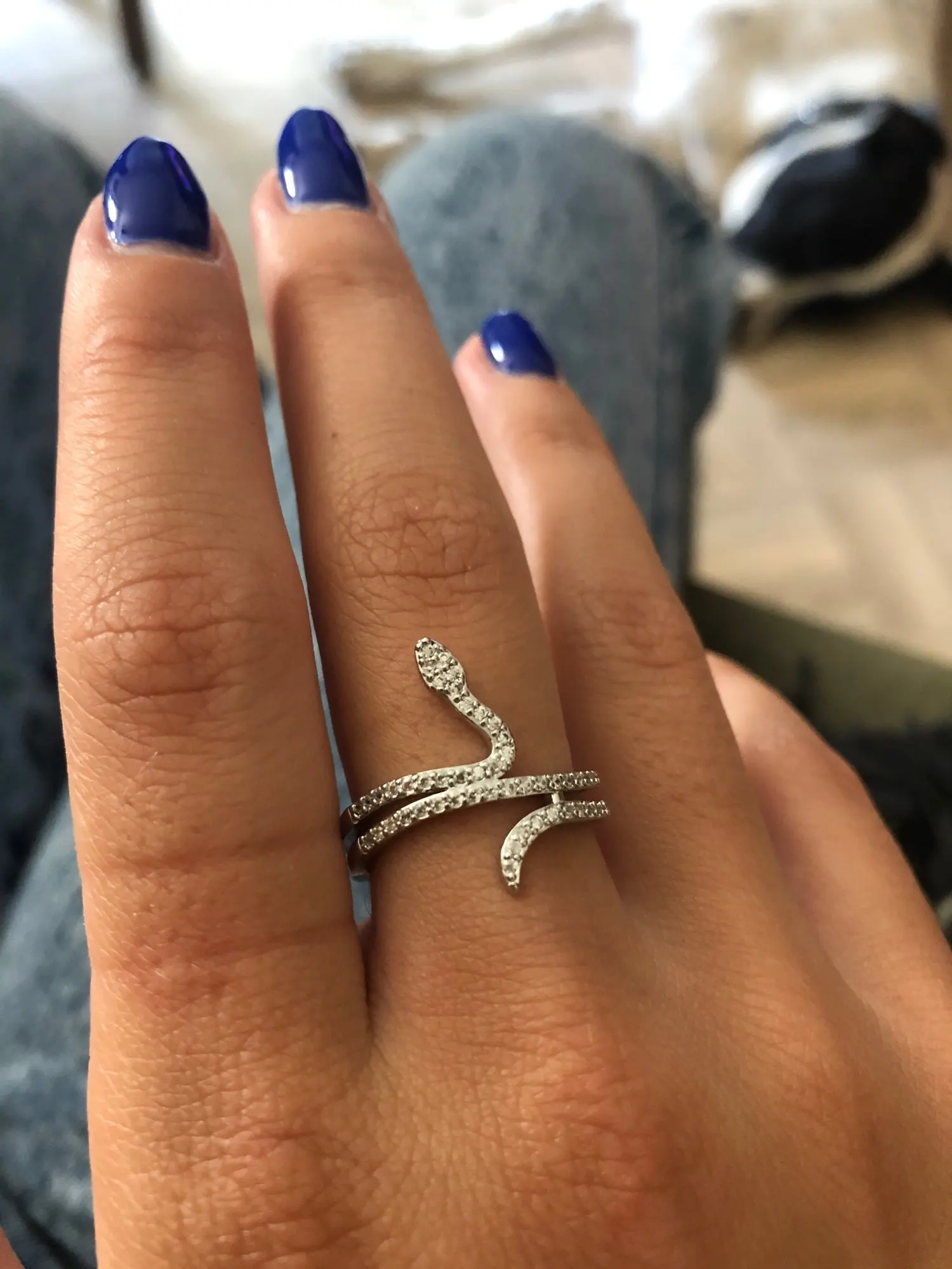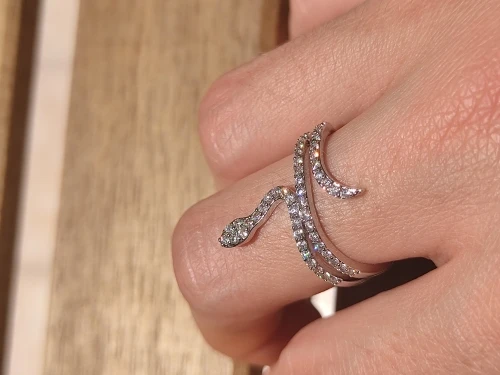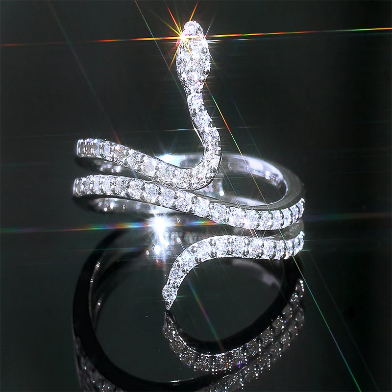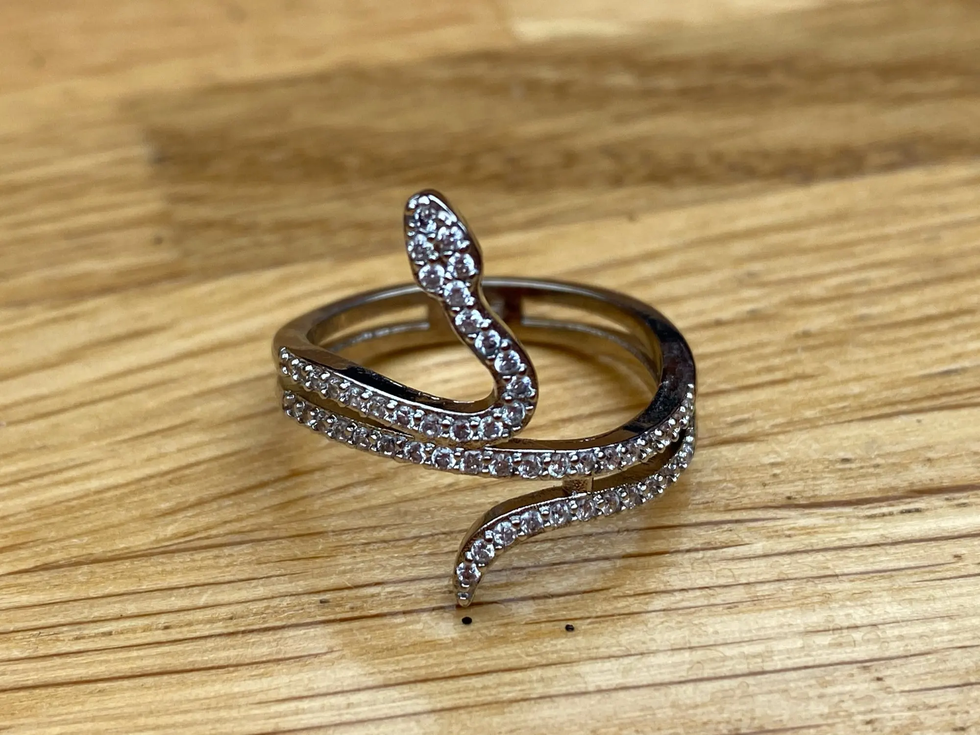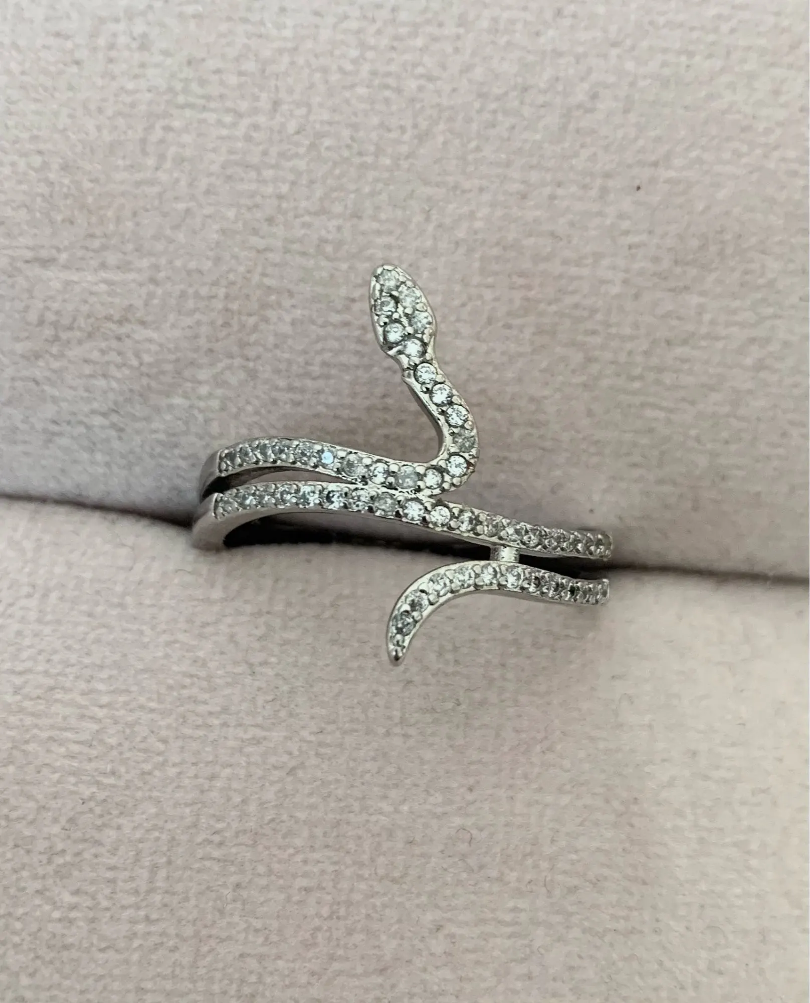 Кольцо женское в виде змеи, серебристого цвета с фианитами