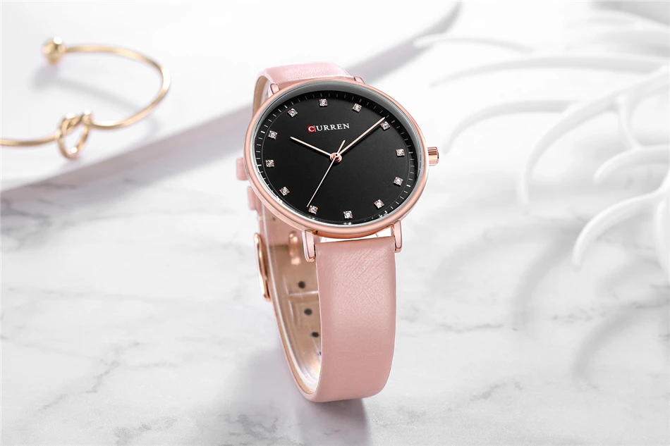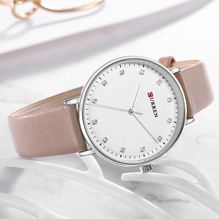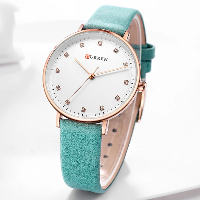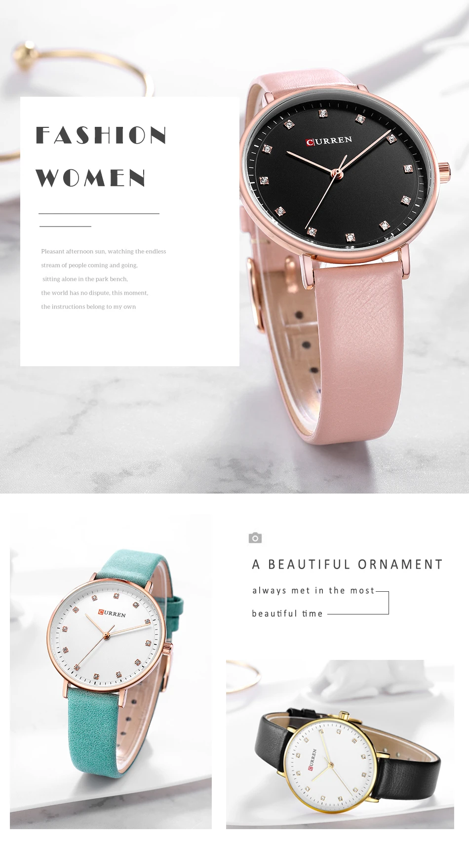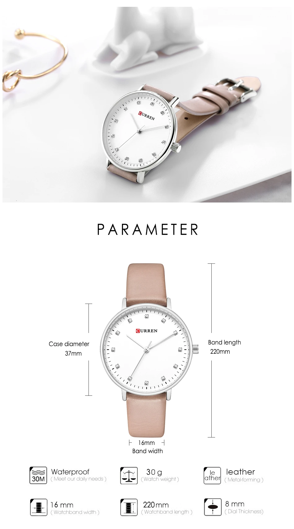 Часы женские CURREN, кожаные, элегантные, водонепроницаемые, стразы