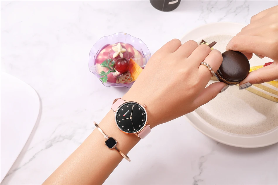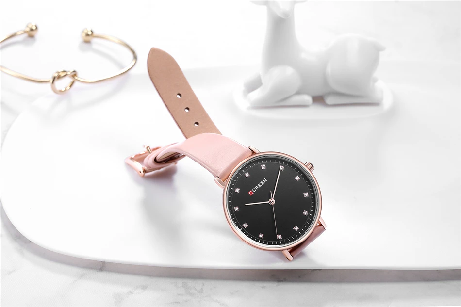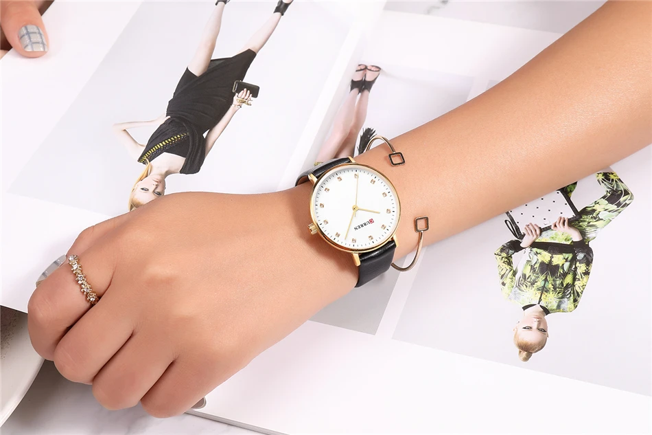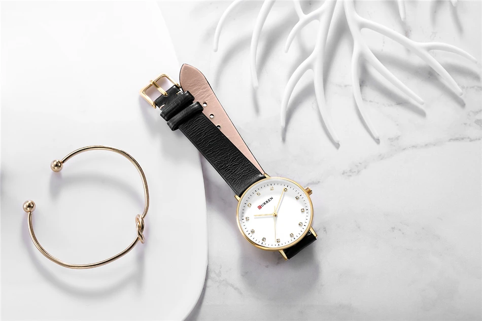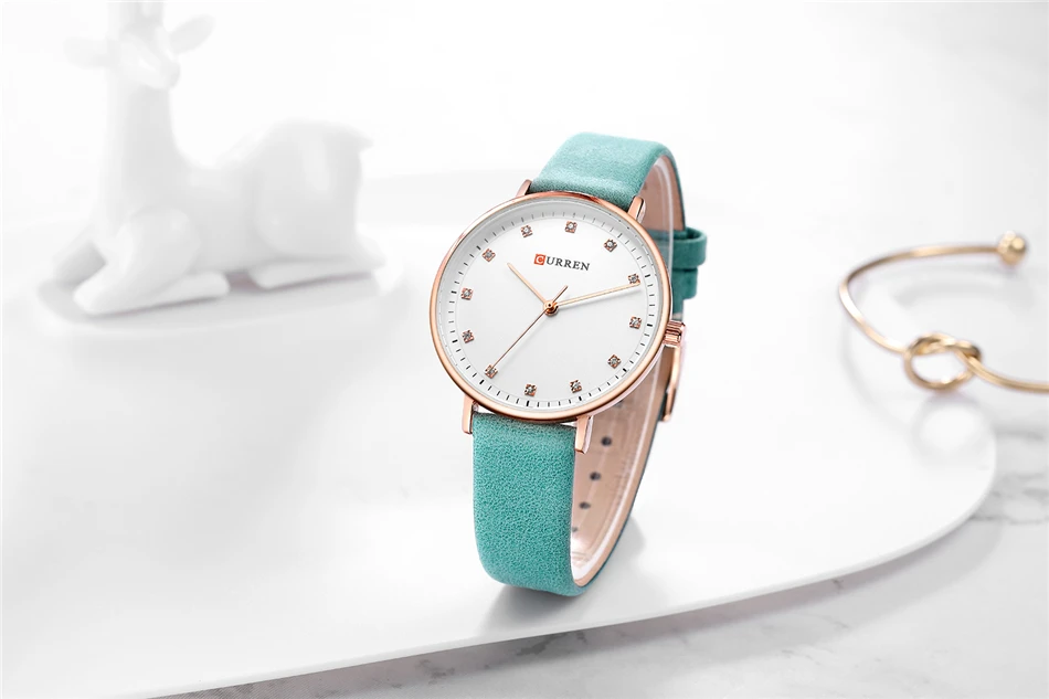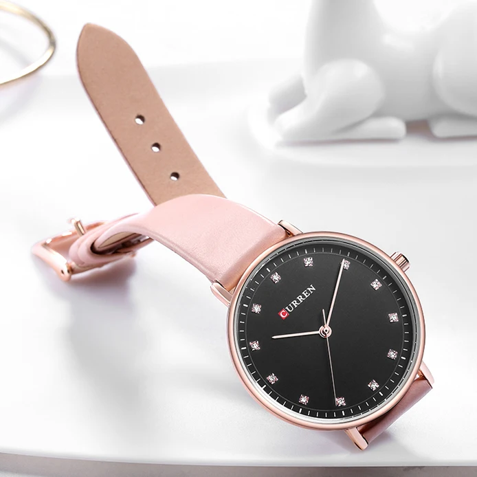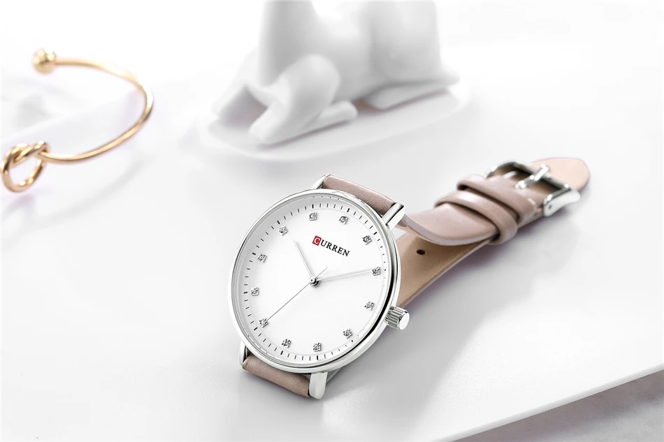 Часы женские CURREN, кожаные, элегантные, водонепроницаемые, стразы