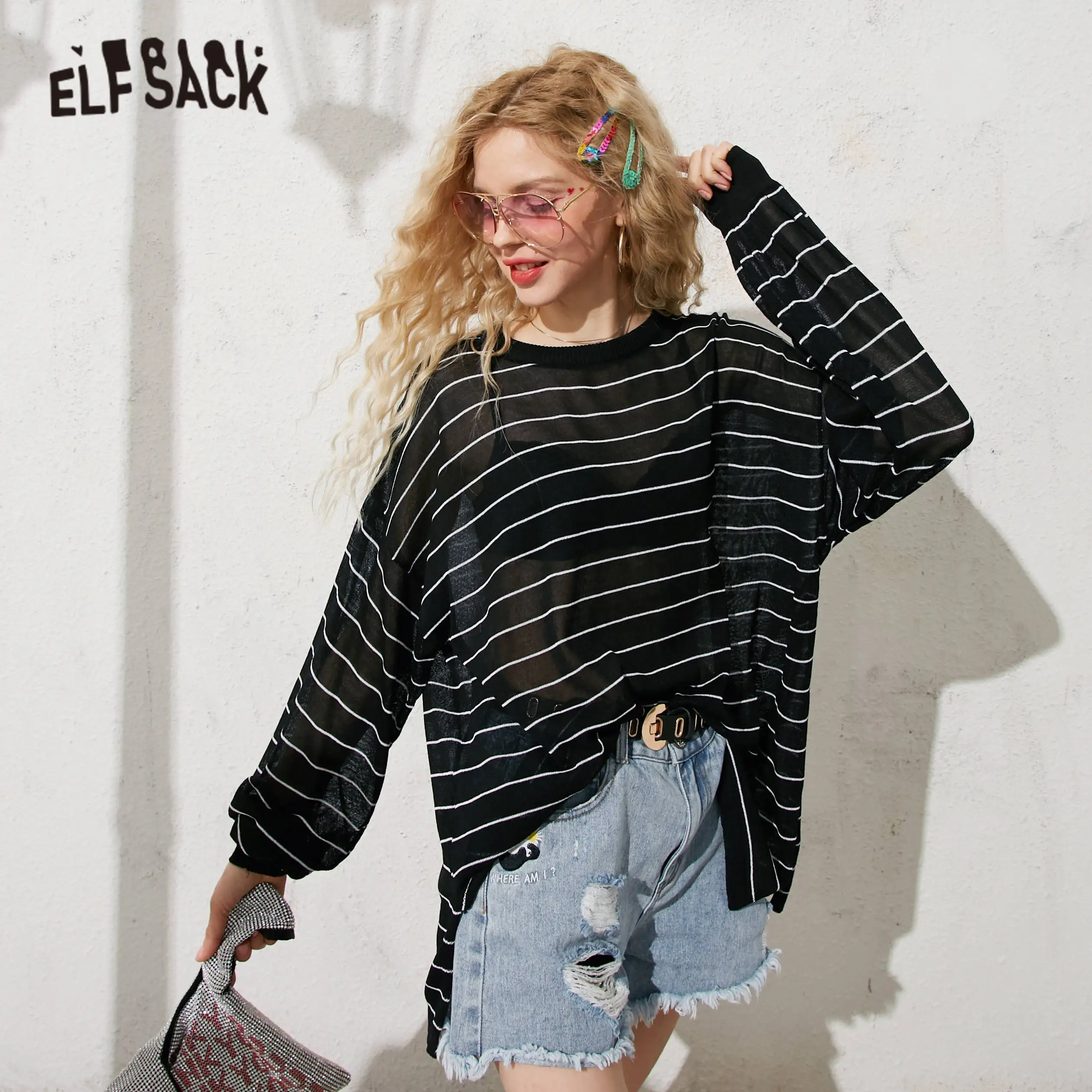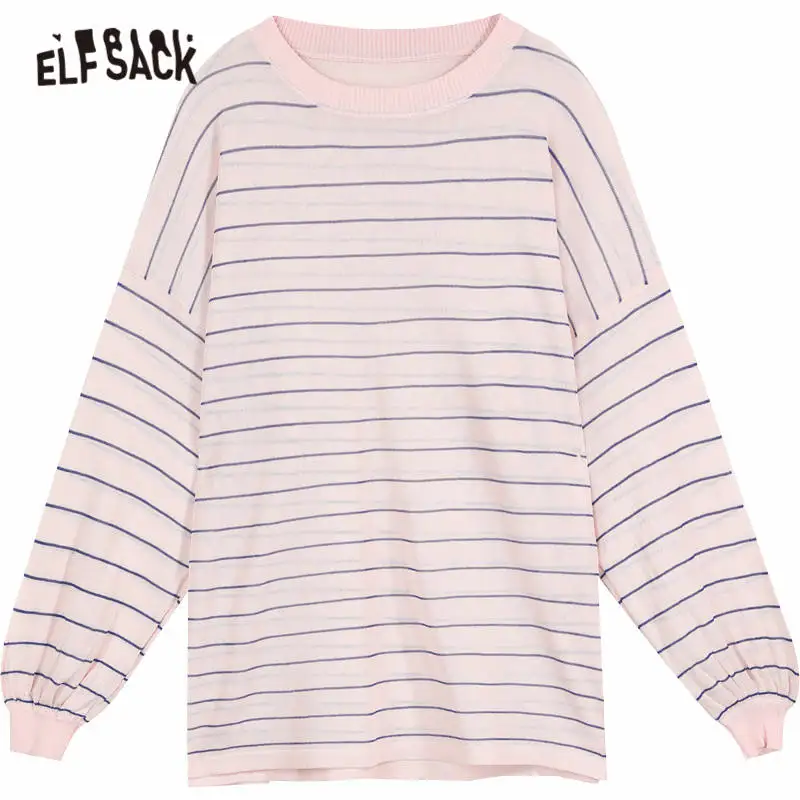 ELFSACK Многоцветный Полосатый оверсайз Повседневный Женский пуловер свитер 2020 Весна винтажный рукав-фонарик женский корейский Повседневный тонкий Топ