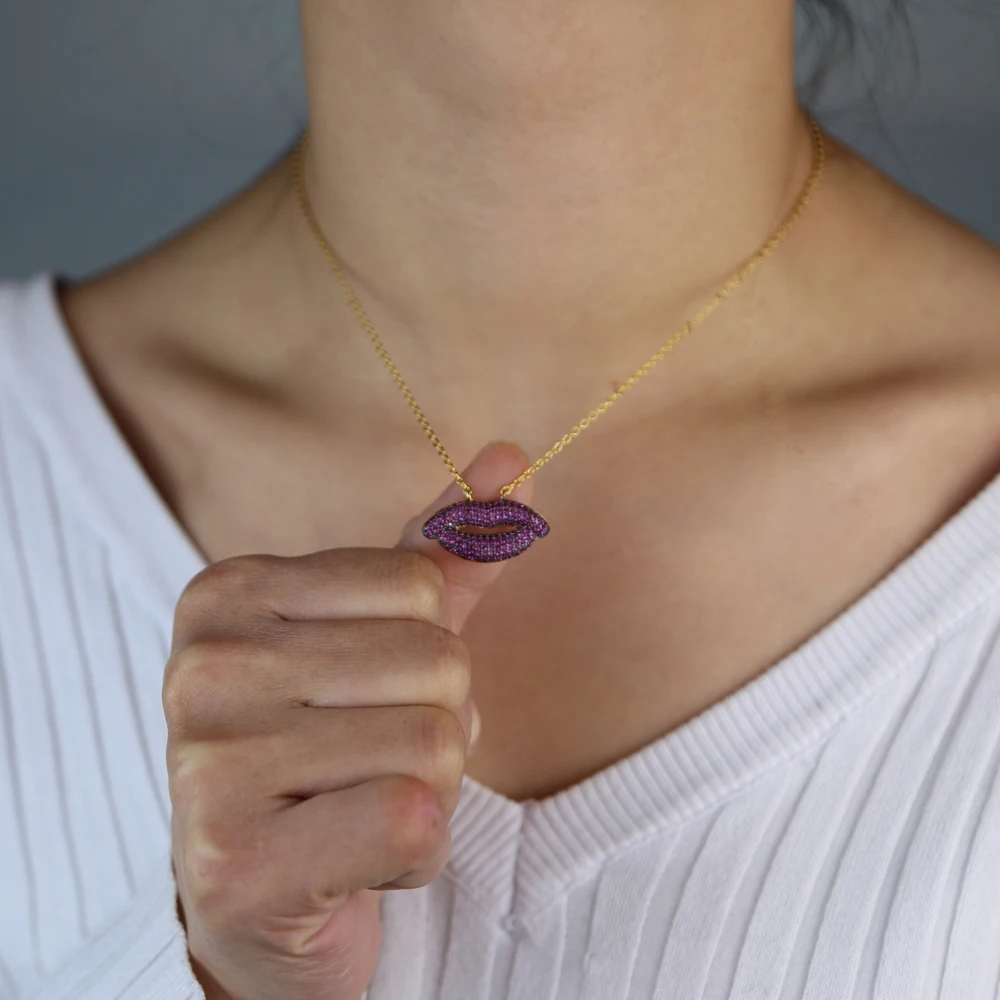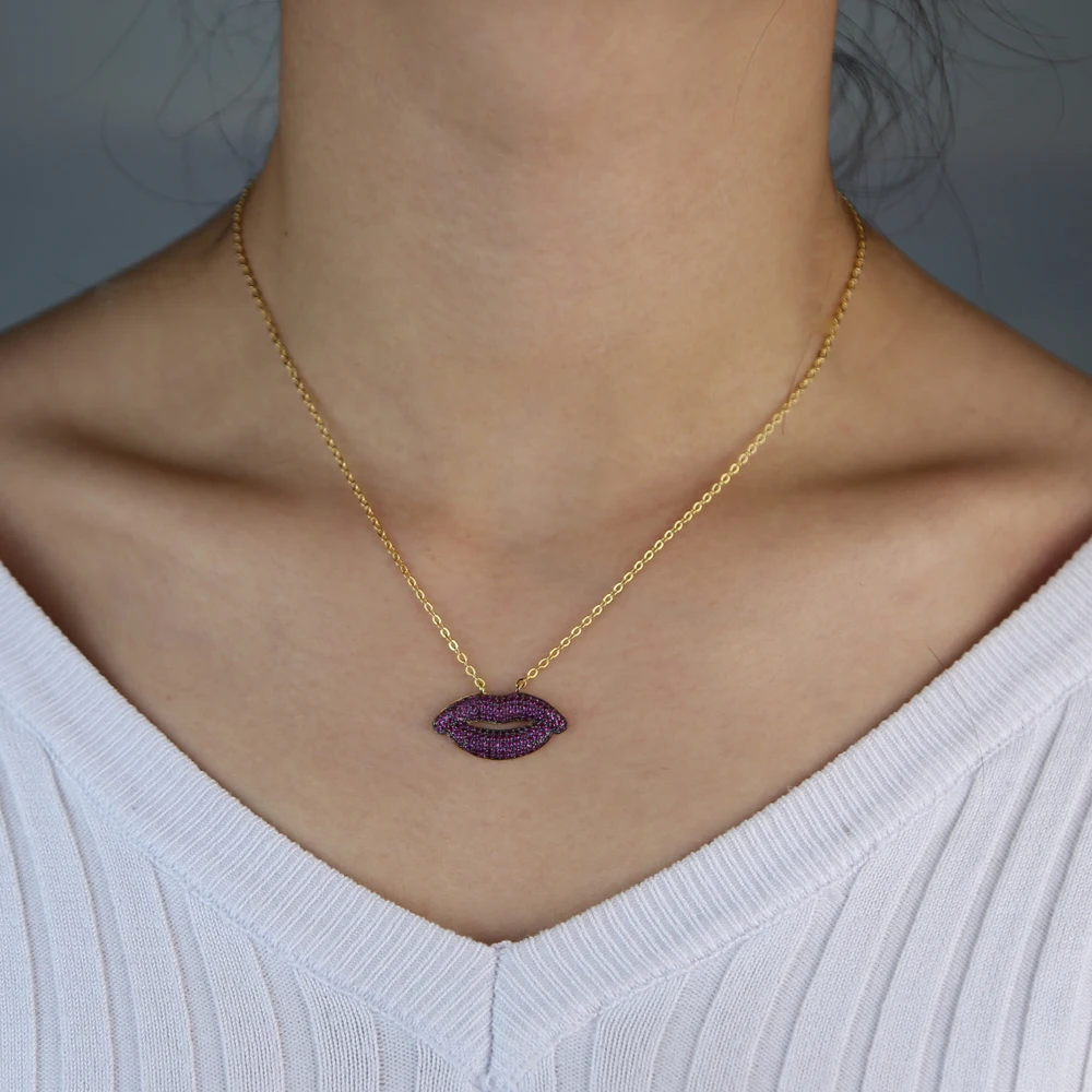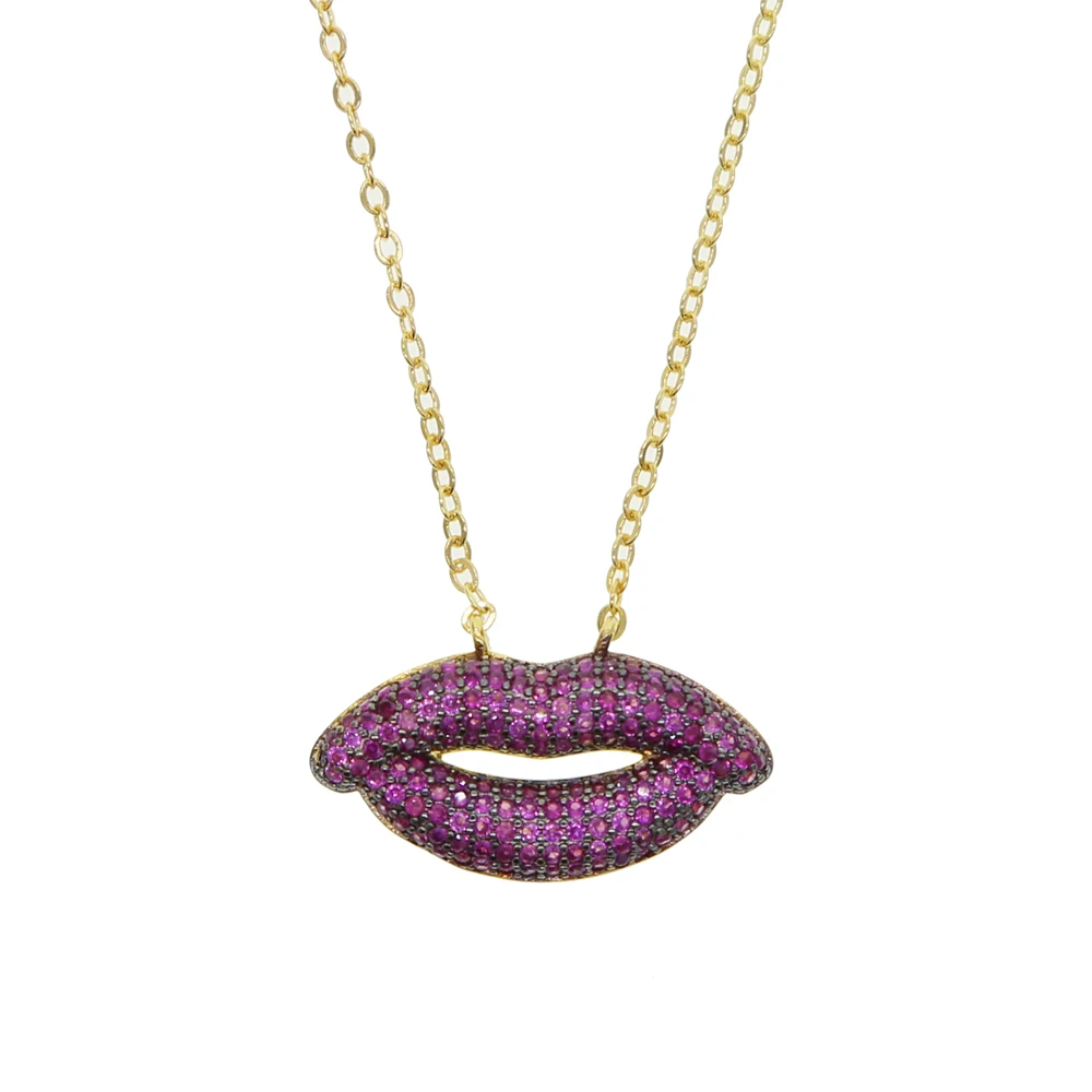 Губы рот сексуальный свитер модное ожерелье ювелирные изделия фианит Женское Ожерелье Подвески золотой цвет цепь подарок на день Святого Валентина