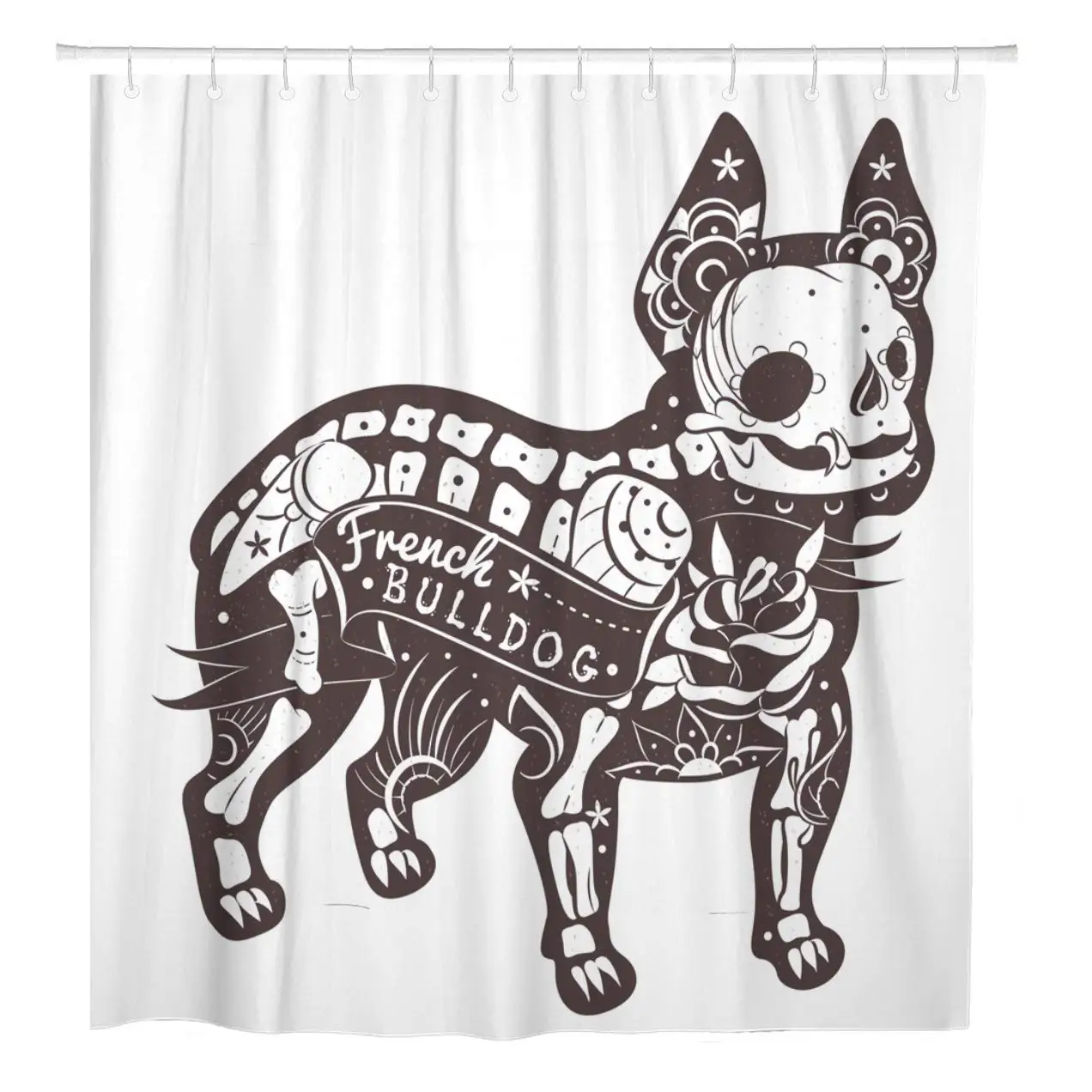 Собака Скелет Французский бульдог череп тату животные красивые креативные занавески для душа водонепроницаемая ткань 72x72 дюйма набор