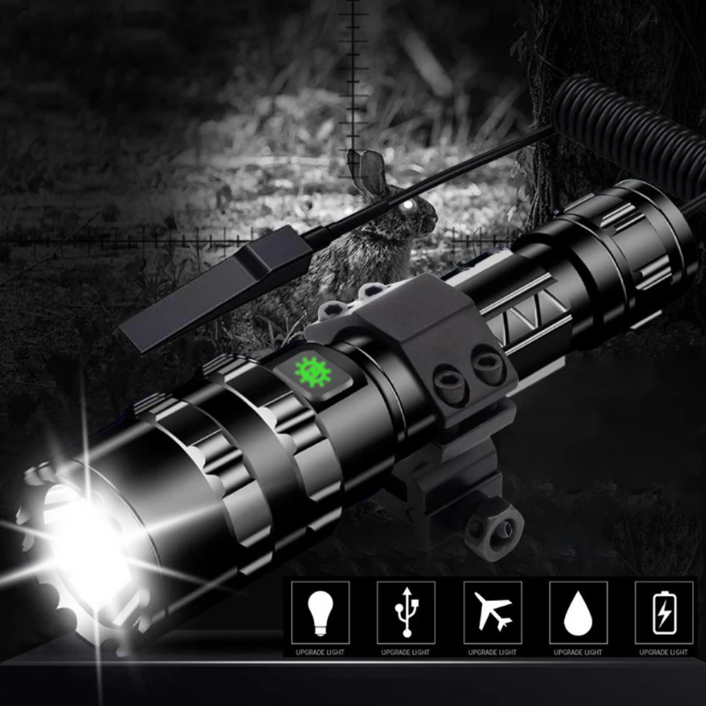 Мощный светодиодный фонарик с зарядкой от USB, тактический светодиодный фонарь с красным, зеленым и белым светильник том для охоты, кемпинга, охотничий светодиодный фонарь, аккумулятор 18650