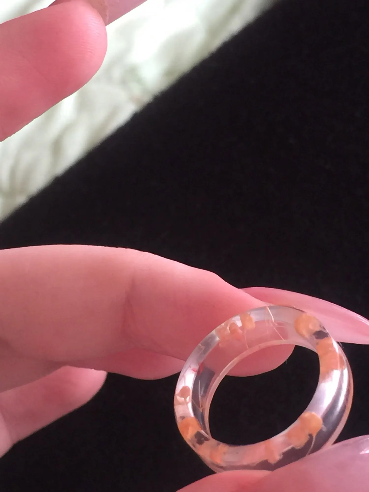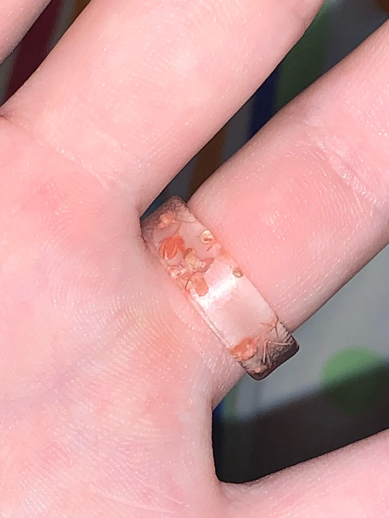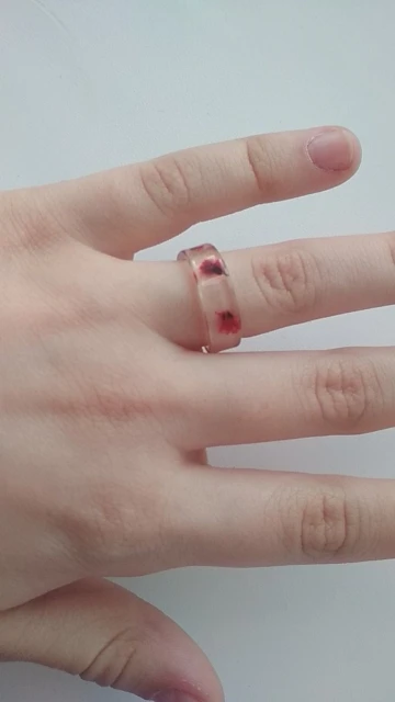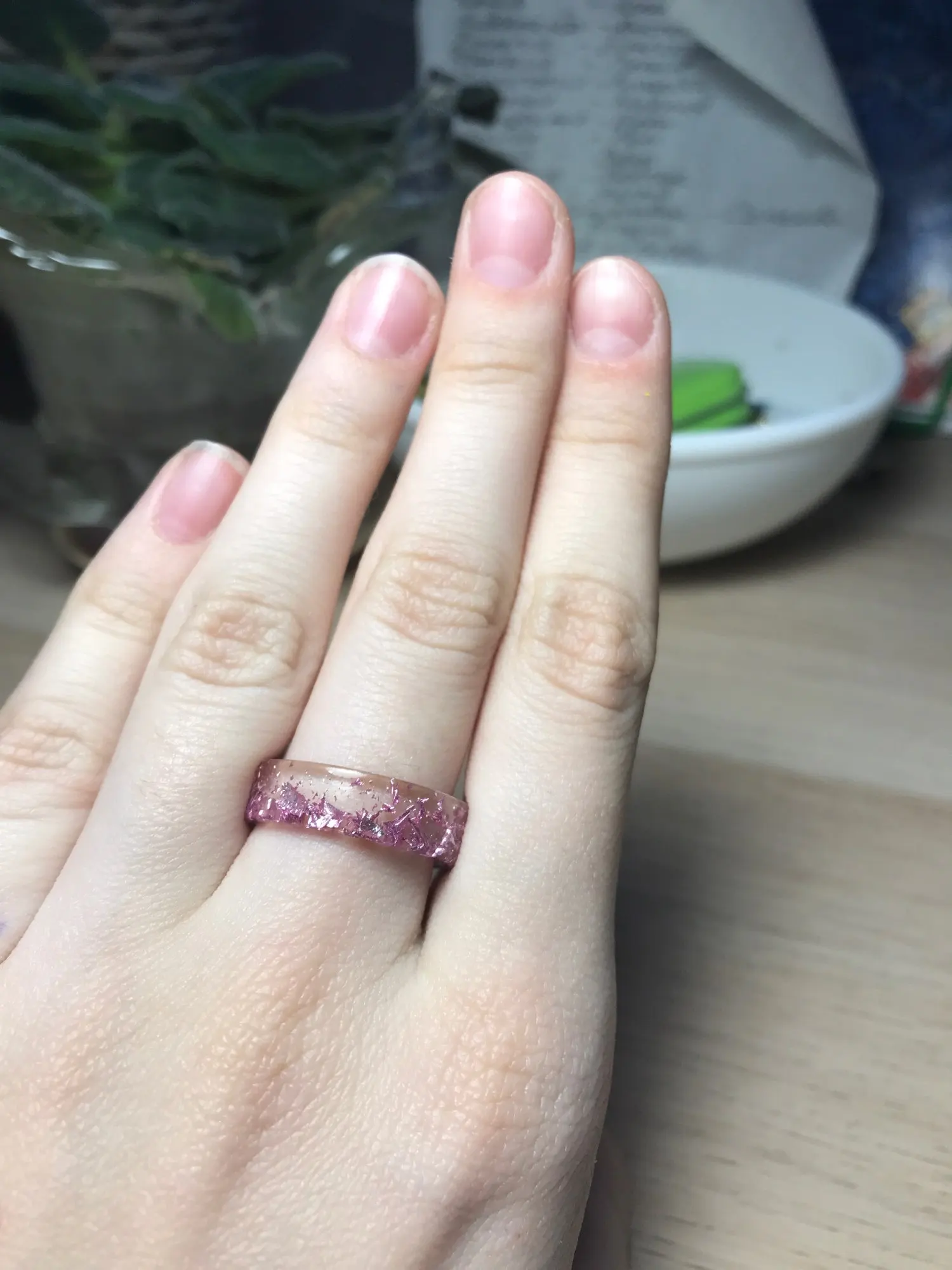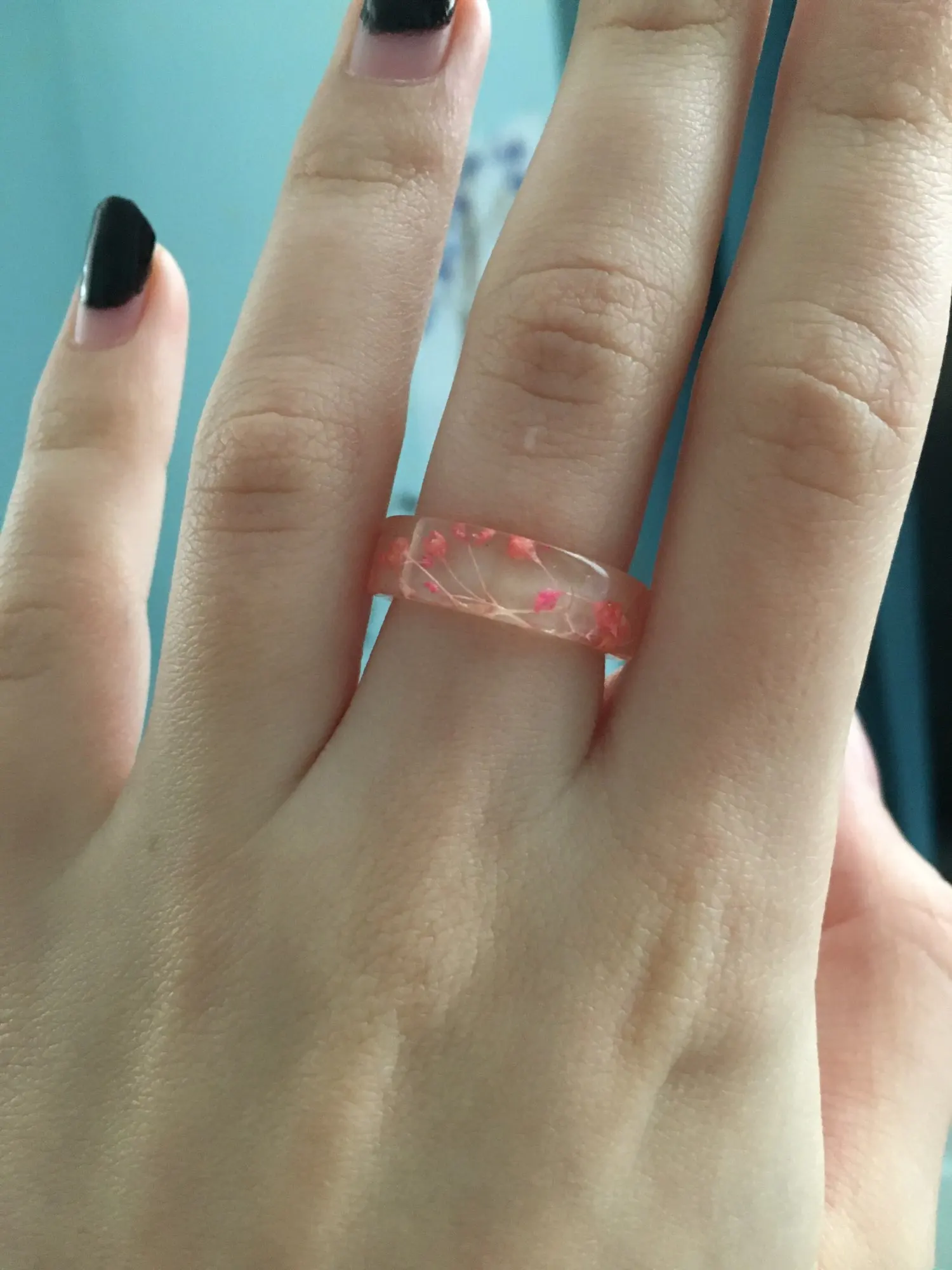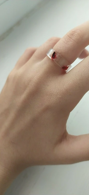 Товар пришёл где-то за месяц, соответствует описанию, правда кажется это не из эпоксидки, а из пластмассы. А ещё я немножко сглупила, заказав не свой размер, и теперь смогу его носить только на большом и третьем пальце, но это не минус)