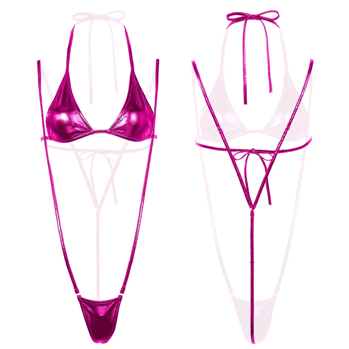 Женский эротический Блестящий металлический Комплект mini нижнее белье мини-бикини, один размер подходит большинству.