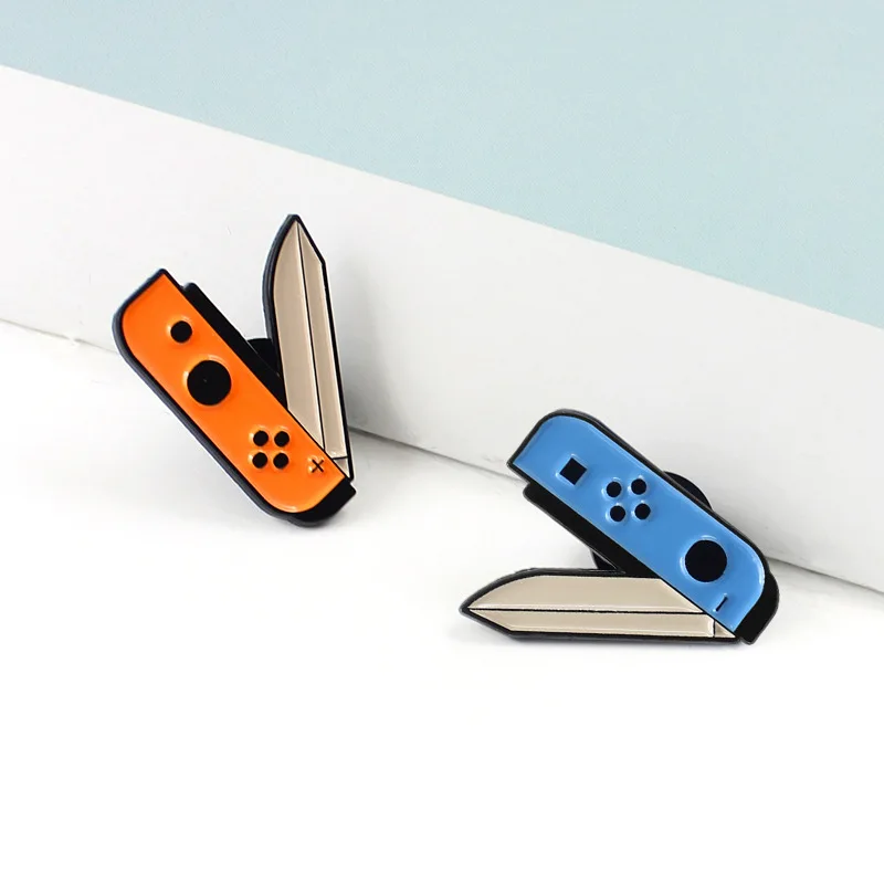 Эмалированная булавка оранжевого или синего цвета, брошь с изображением героев игр, контактный переключатель, геймпад Nintendo, Ювелирное Украшение Нож, Подарочный значок для мальчиков и девочек