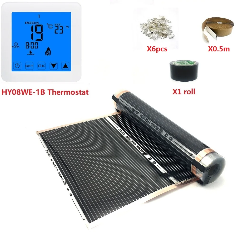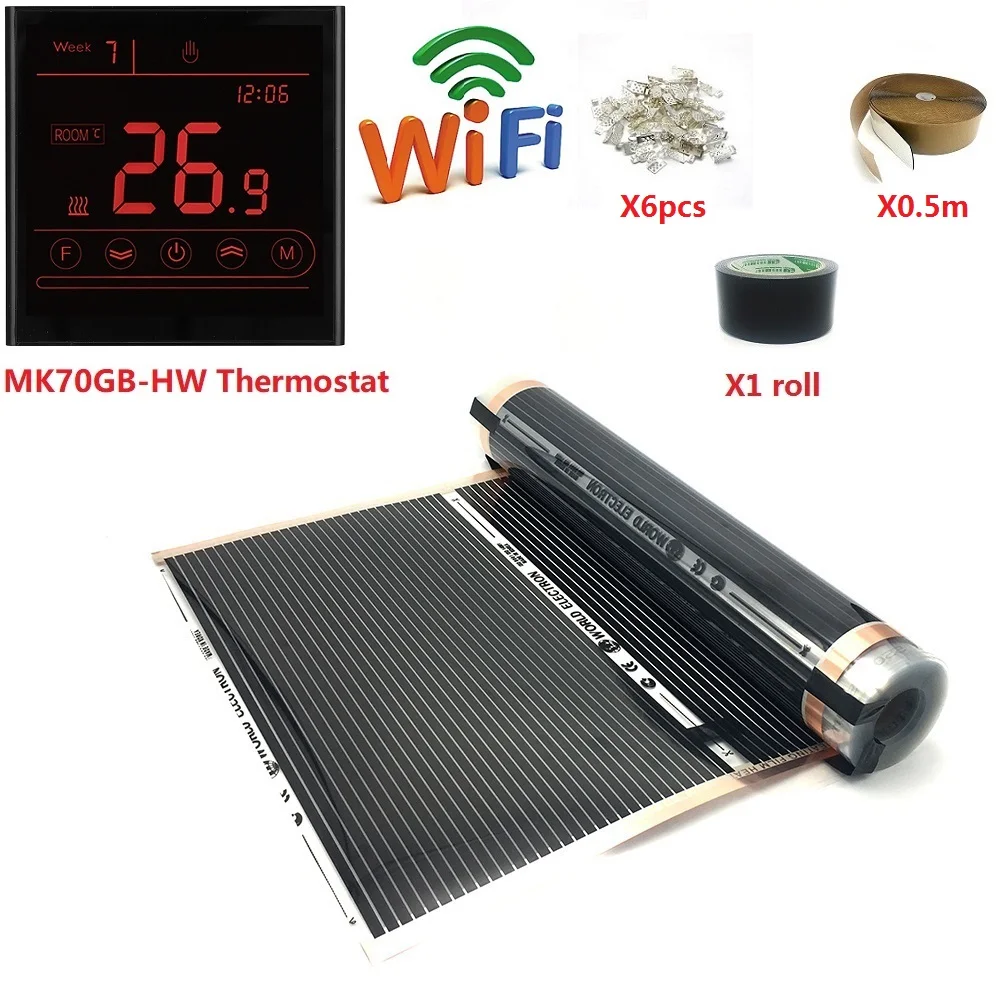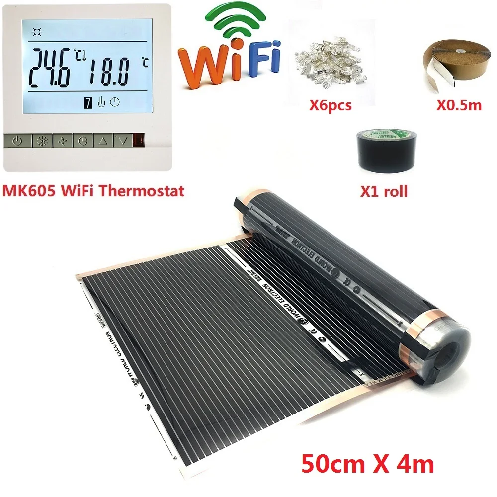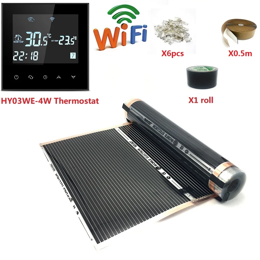 50cmX4m 220 В инфракрасный теплый пол нагревательный фильм наборы с WiFi термостатом зажимы и изоляционные пасты