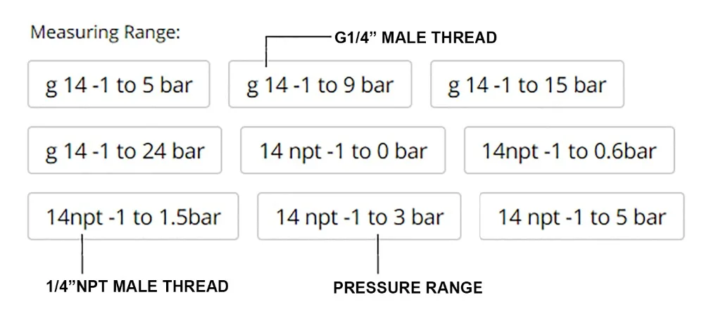 -1 до 3 бар, -1 до 1,5 бар, -1 до 0,6 бар