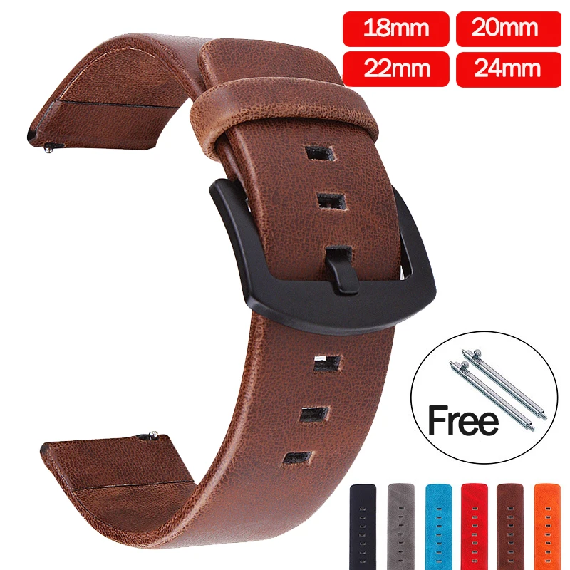 Ремешок из натуральной кожи для часов Amazfit, сменный Браслет для Samsung Galaxy Watch 46 мм 42 мм Gear S3 24 мм 22 мм 20 мм 18 мм