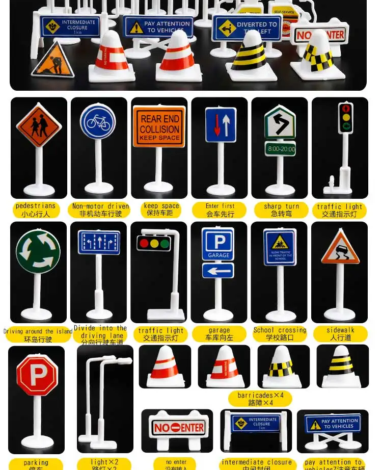 Миниатюрные дорожные знаки, светильник вой блок, автомобильные игрушечные аксессуары для детей, Детский игровой коврик, дорожный знак, IC игрушка для детей, подарок на день рождения