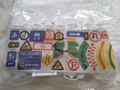 Посылка шла месяц до Барнаула. К сожалению три дорожных знака оказались сломанными. И кое - где имеются следы грязи. Ещё один недочёт - это масляное пятно на наклейках с обозначением дорожных знаков. За это снимаю одну звезду. Заказывали для оформления автостоянки для детских машинок, будем использовать то, что пришло.