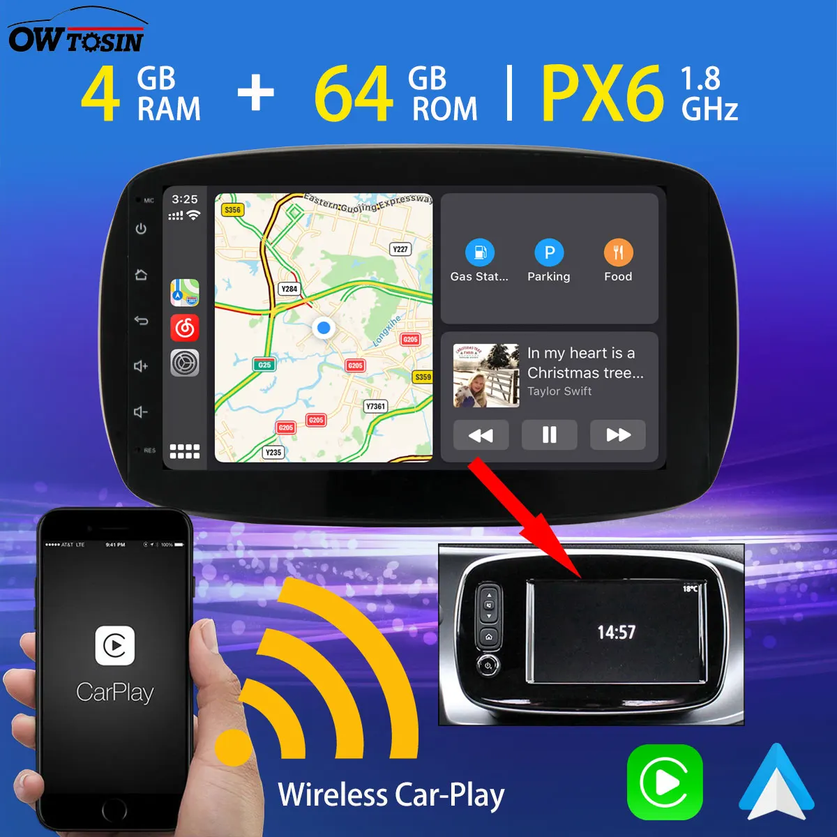 4 ГБ ОЗУ + 64 Гб ПЗУ Android 10,0 Автомобильная развлекательная и навигационная система