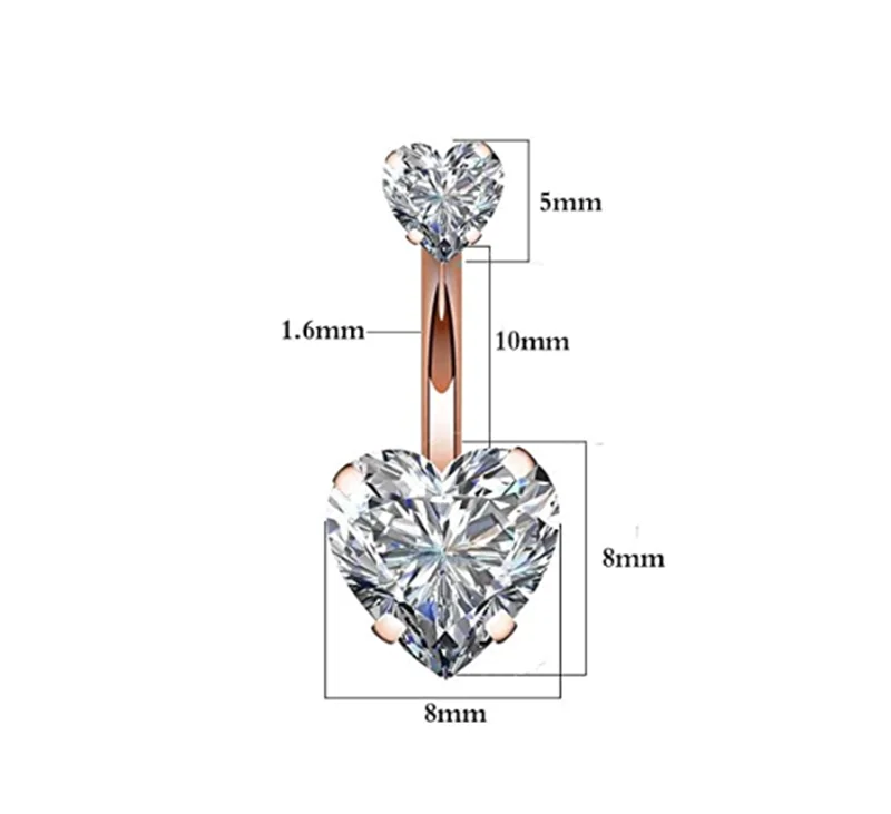 1 шт. стальные кольца для пупка Хрустальный пирсинг пупка Сердце Ст...