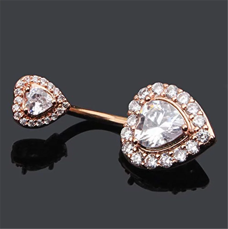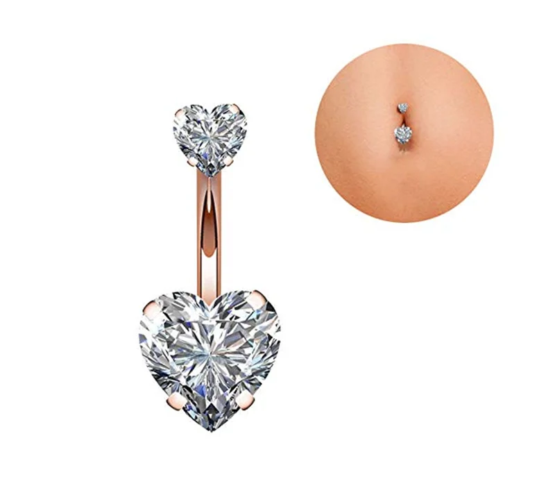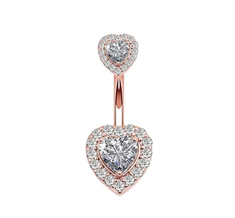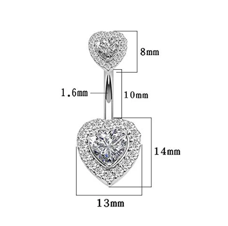 14 г Двойное сердце кубический цирконий пупок кольцо пирсинг из хирургической стали ювелирные изделия