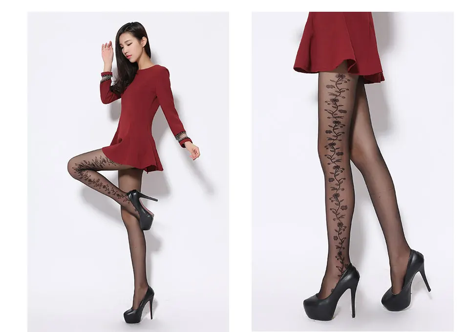20 Denier ультратонкие Летние черные модные и сексуальные женские жаккардовые колготки с узором из сердечника шелковые колготки чулки