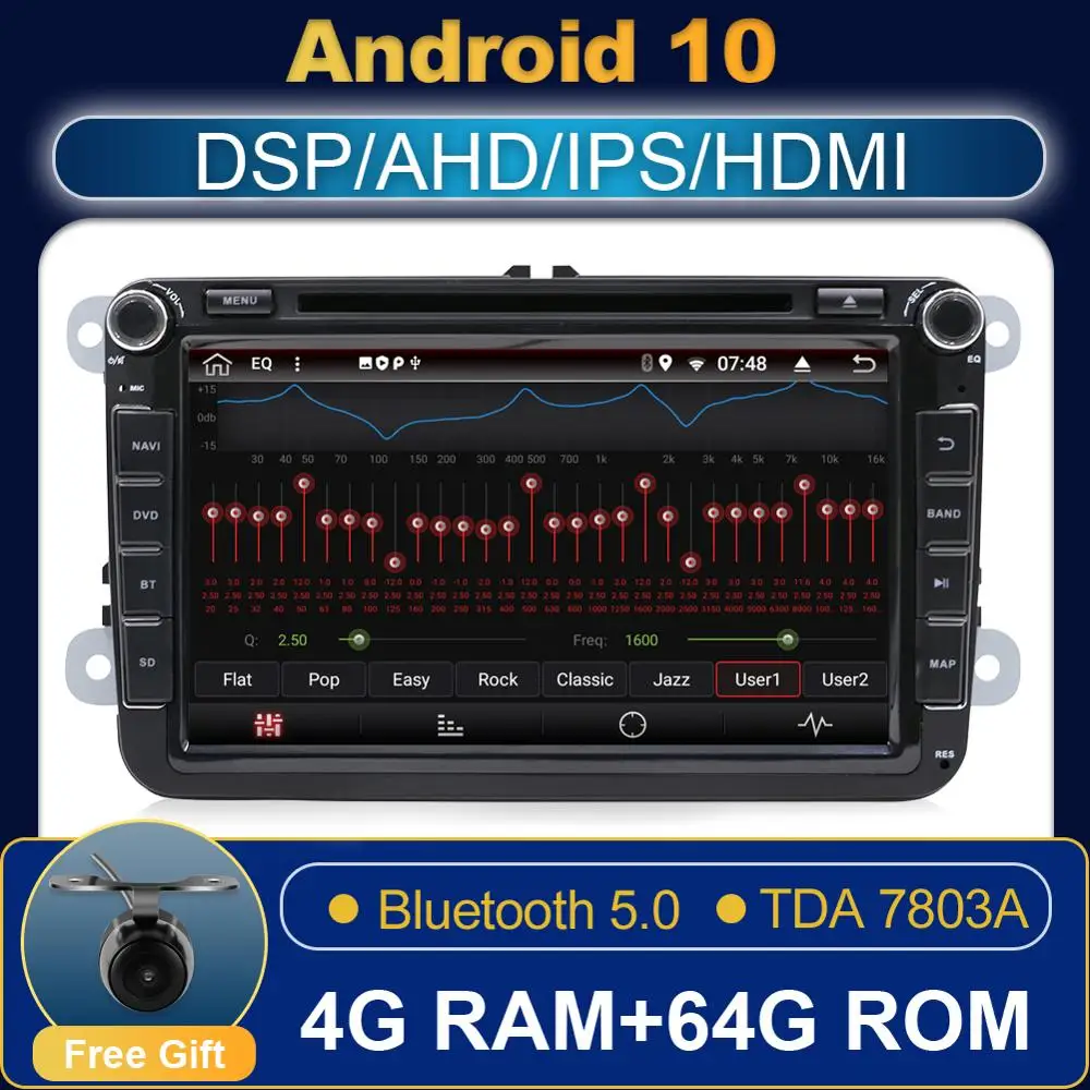 Автомобильный DVD-плеер 8 дюймов 2din android 10 для Volkswagen GOL...
