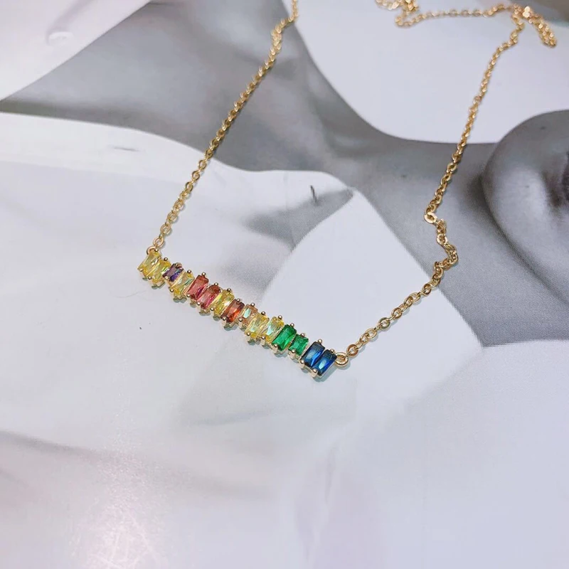 FLOLA CZ радужные ожерелья для женщин золотые ожерелья от сглаза с ...