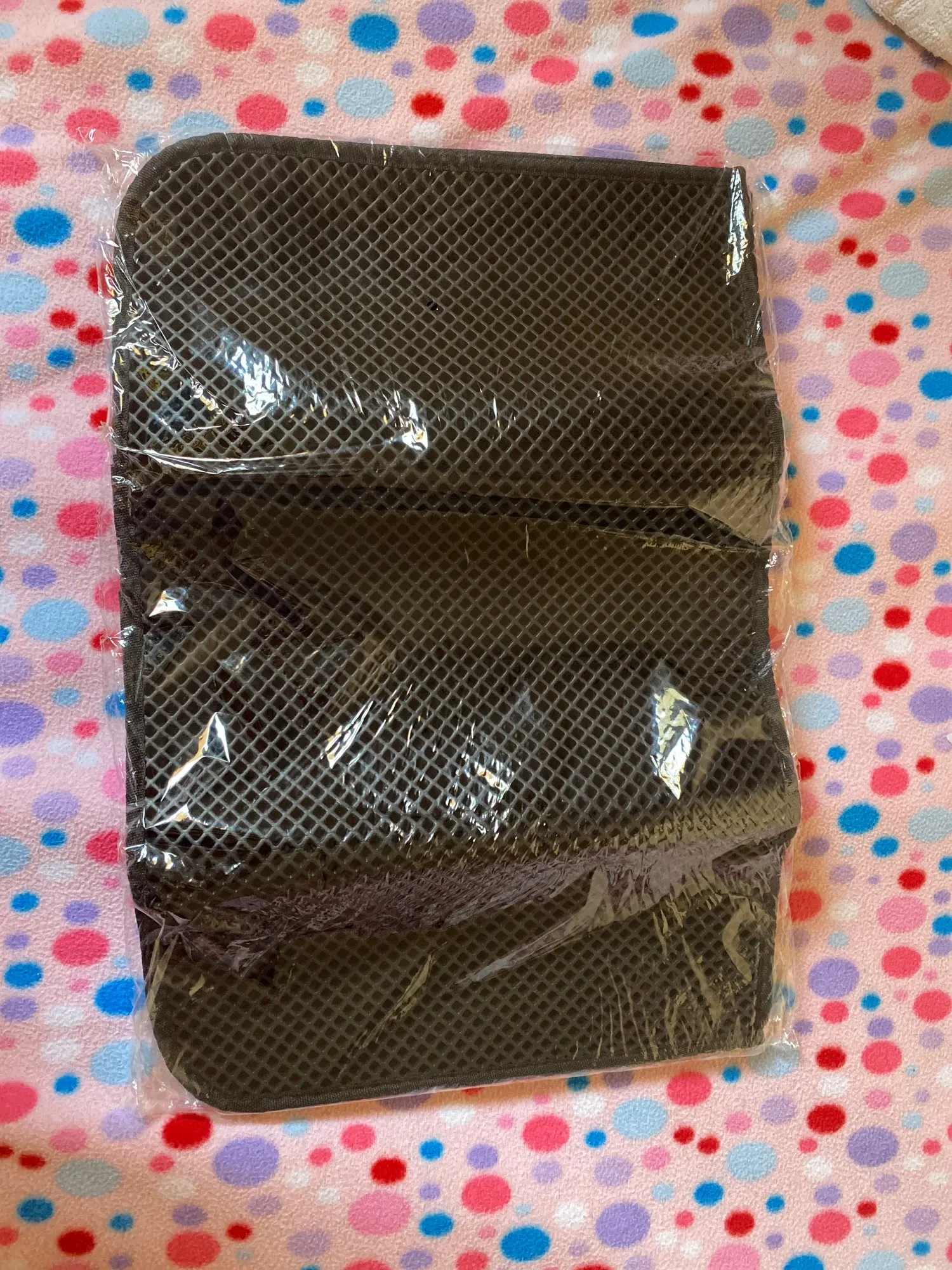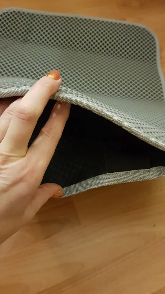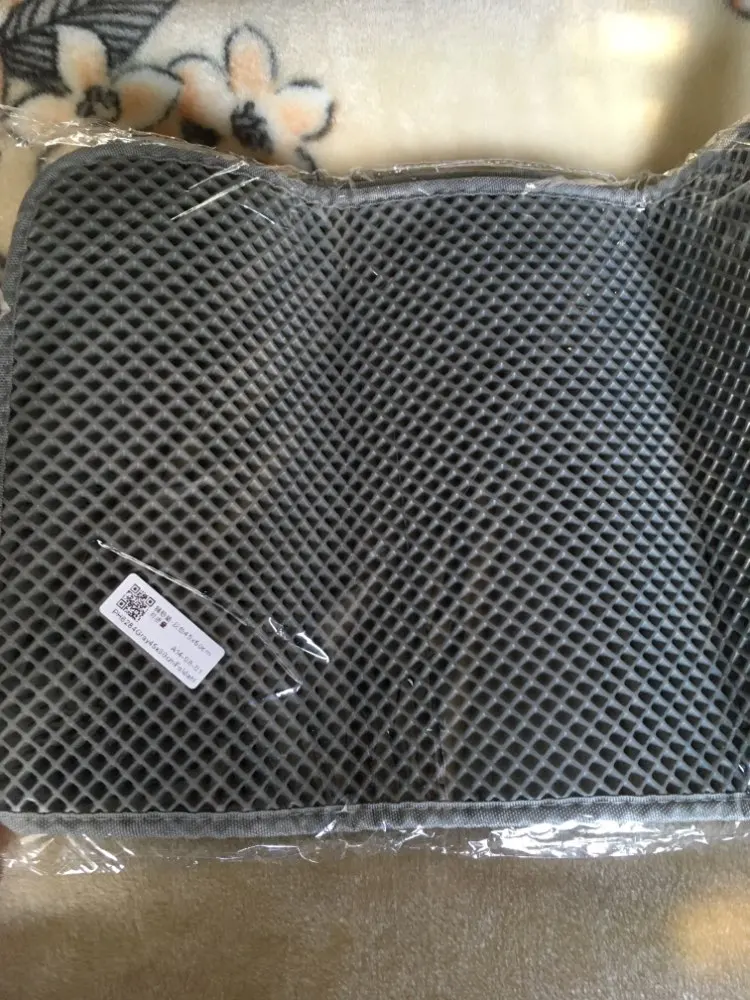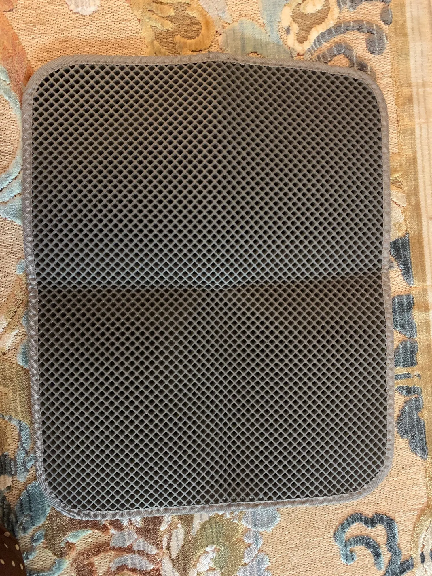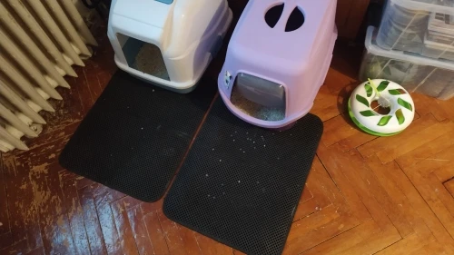 Я купила самый большой коврик, потому что кошки не оставляют наполнитель на коврике сразу посое 1 шага а несут его дальше. И даже самый большой коврик 100% не спас. Но большая часть наполнителя остается в коврике. Он и правда очень круто задуман. Один минус, он немного идет волнами. Так как было сложен два раза пополам при транспортировке. Уже почти неделю лежит на полу и все равно еще не ровный. Но это не критично, главное что он выполняет свою функцию.