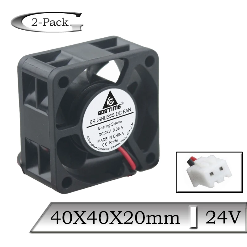Кулер Gdstime для 3D-принтера, 2 шт., 24 В, 40x40x20 мм, 40 мм, 4 см, 4020S, 2 контакта