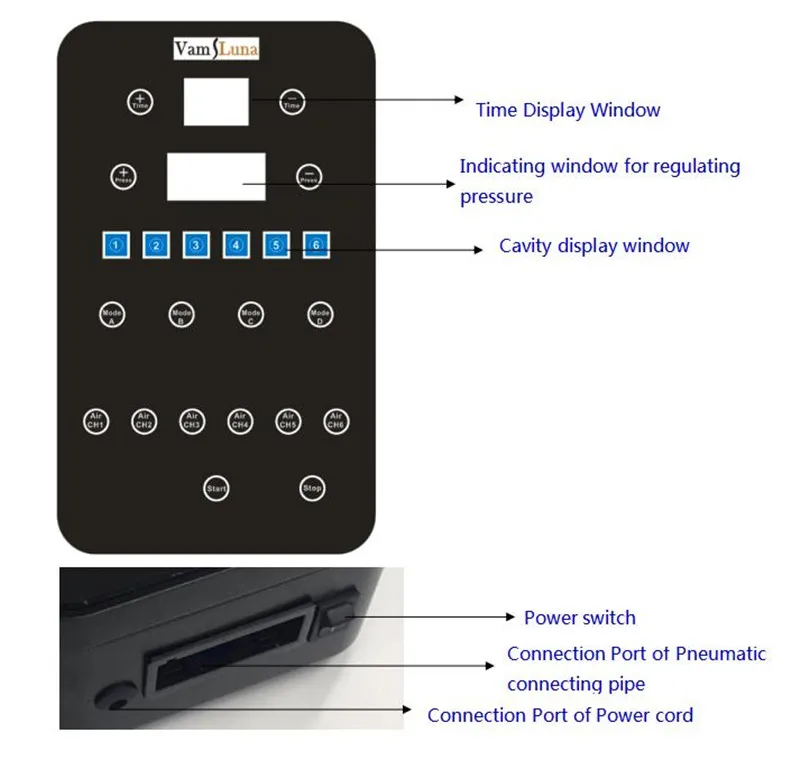 Продукт является надувной и сдувающей системой, сформированной путем управления основным двигателем и рукавом конечности (воздушным мешком), режимом работы, рабочим давлением, время работы и другие параметры инструмента устанавливаются через интерфейс человека-машины. Воздушные мешки в каждой камере контролируются встроенной системой (волнистое надувание, удержание и сдувание) для оказания периодического давления на периферическую кровь и ткани человека, Пассивный равномерный массаж с направлением и градуировкой. Используется для ухода за здоровьем и для компенсации недостаточных физических упражнений.
