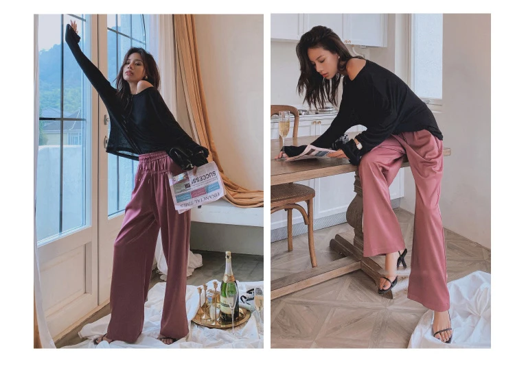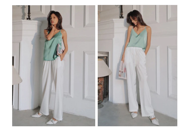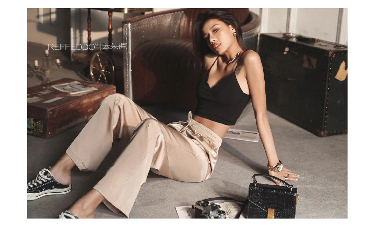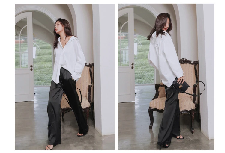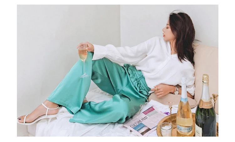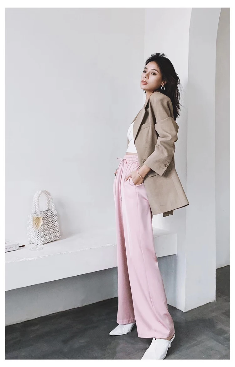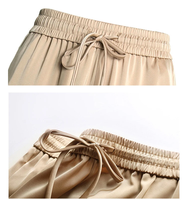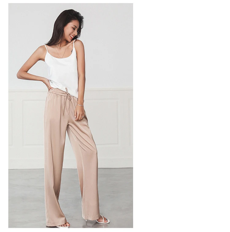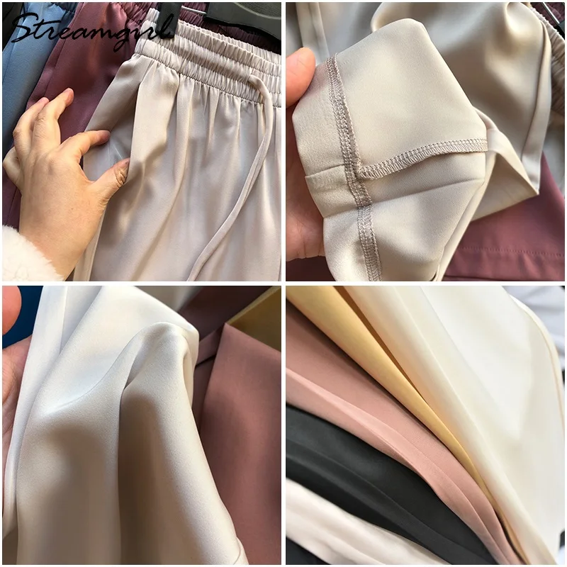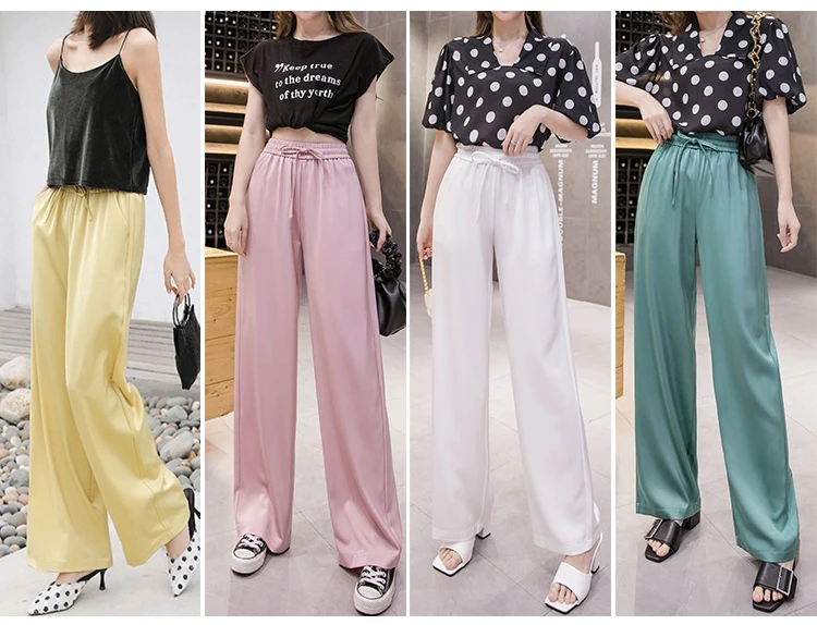 Летние Широкие штаны для женщин, атласные брюки с высокой талией, красные, формальные, 2020