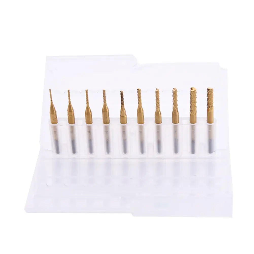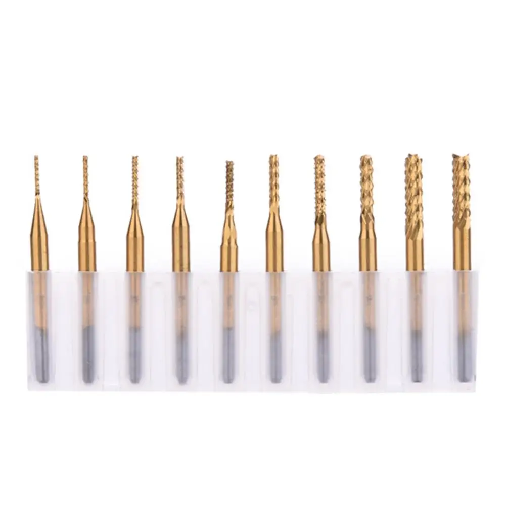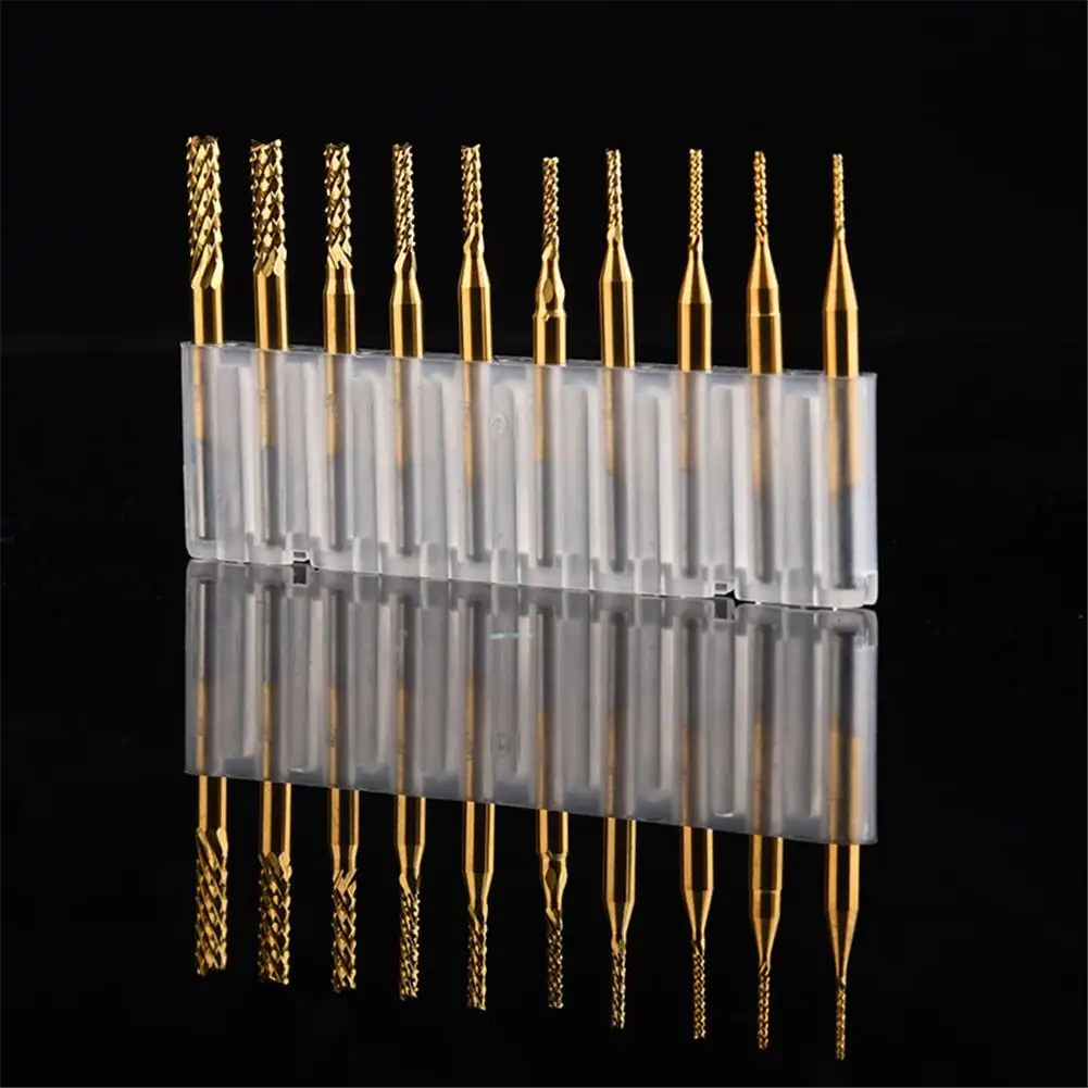 10 шт.лот печатная плата, сверло с титановым покрытием 0,8 мм до 3,175 мм, Гравировальный резак, вращающаяся Концевая фреза с ЧПУ, набор инструментов