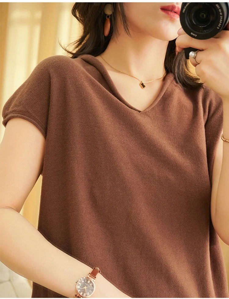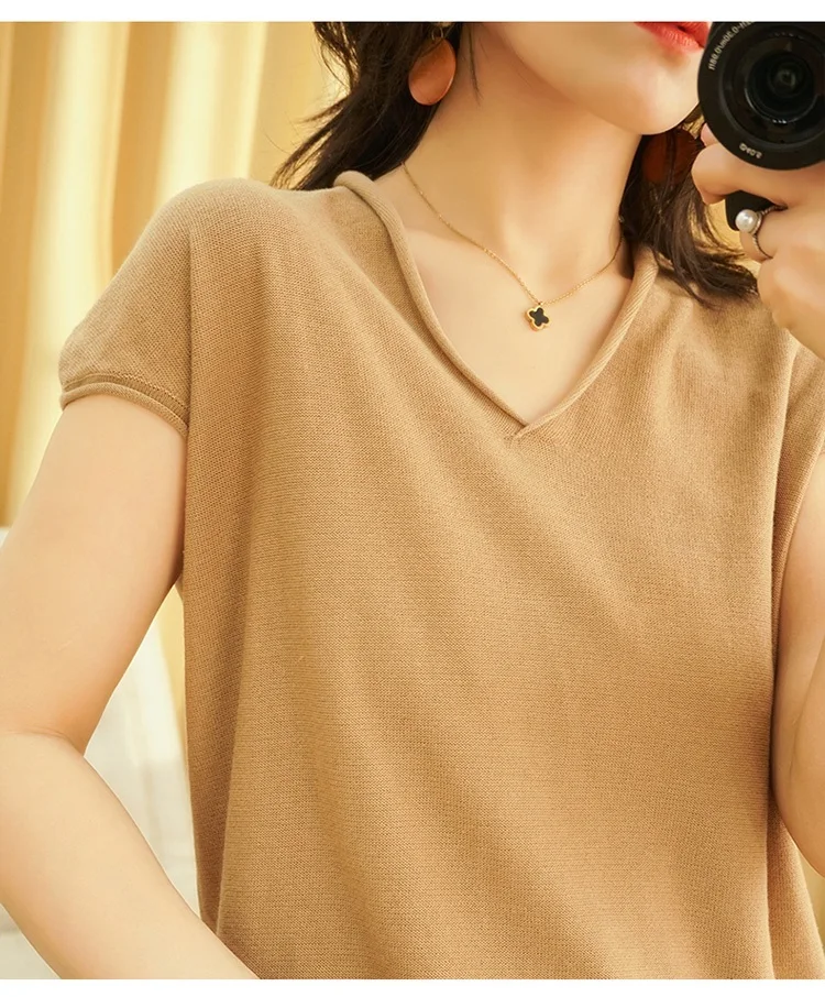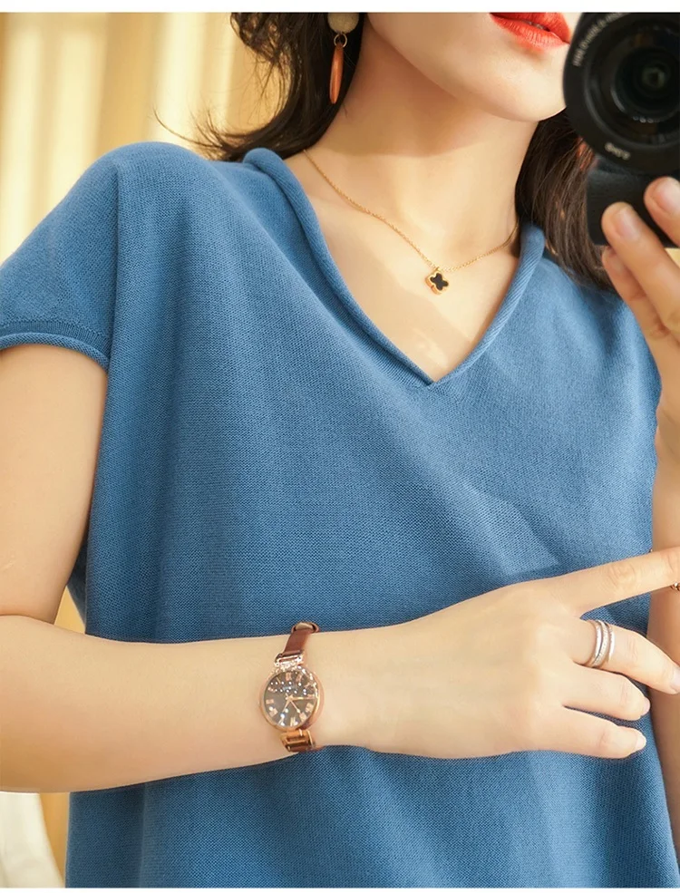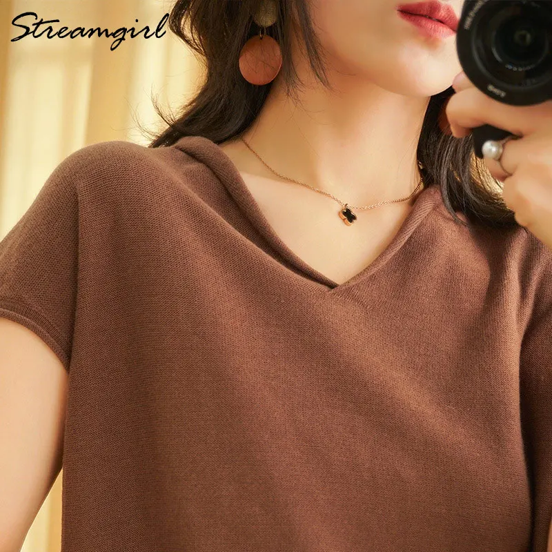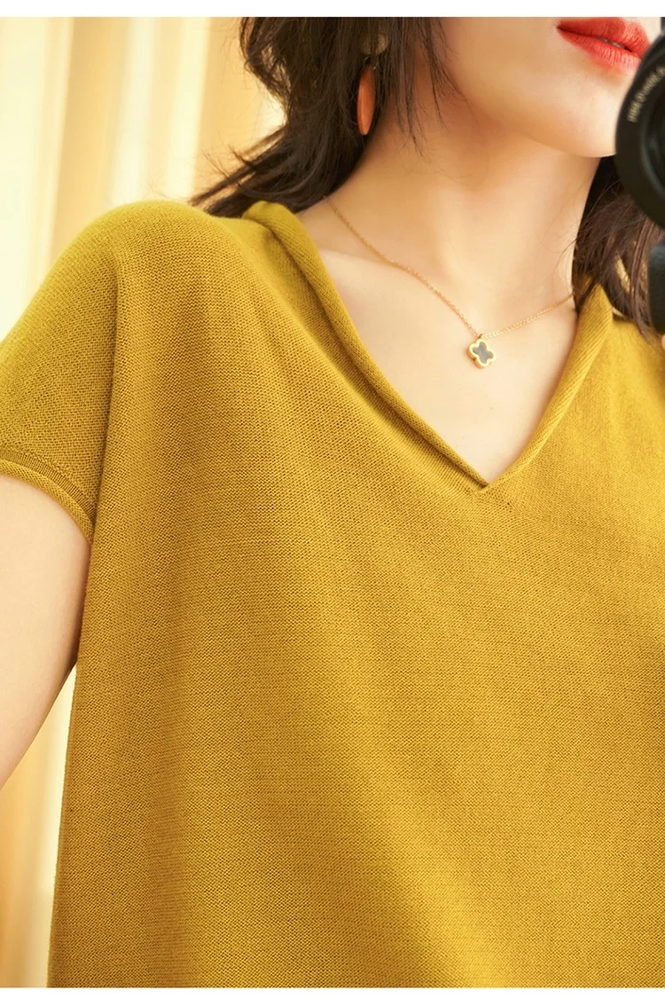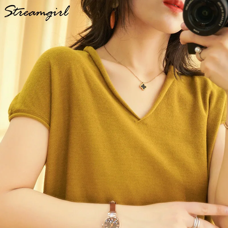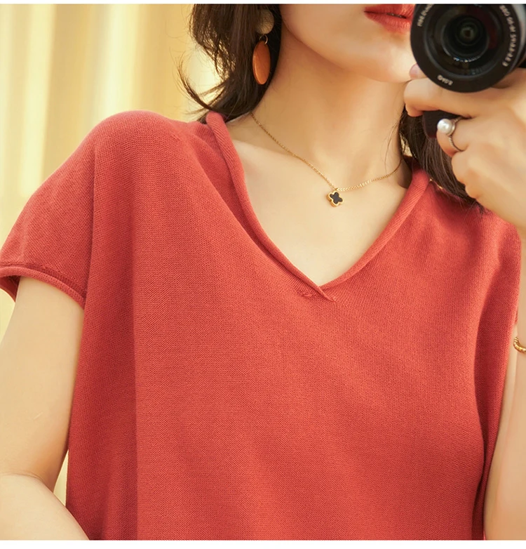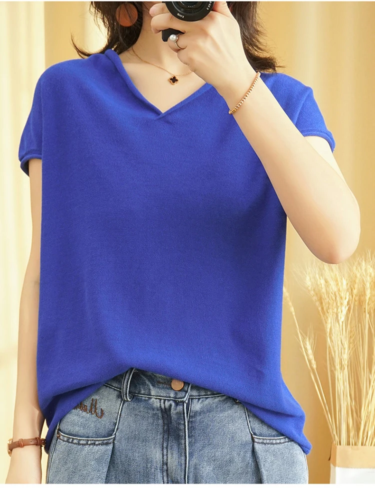 Женские футболки, лето 2021, трикотажная футболка с V-образным вырезом, Женские базовые черные хлопковые футболки, женские футболки с коротким рукавом 2021