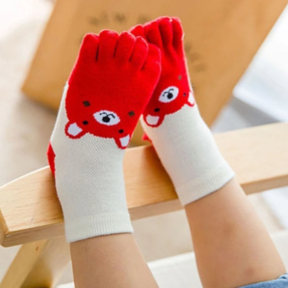 1 пара детских носков с пятью носками для мальчиков и девочек с милыми мультяшными животными kawayiДетские хлопковые носки с пятью пальцами