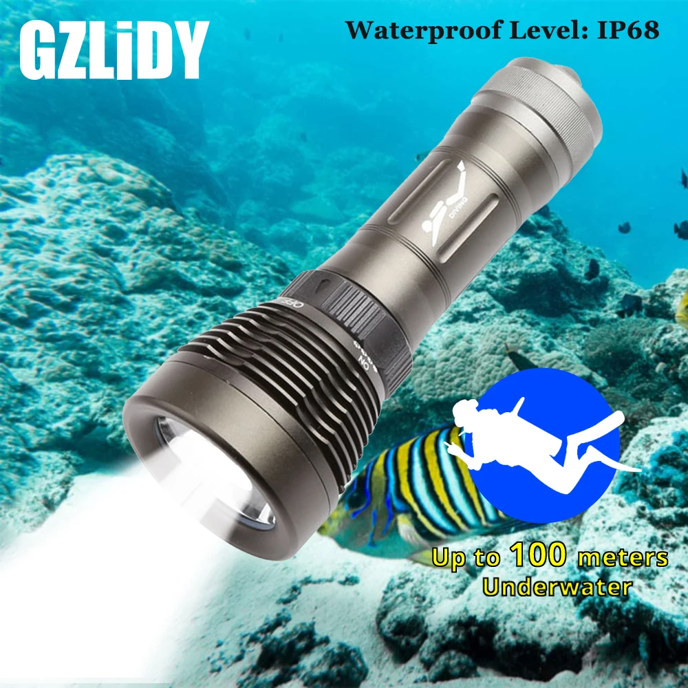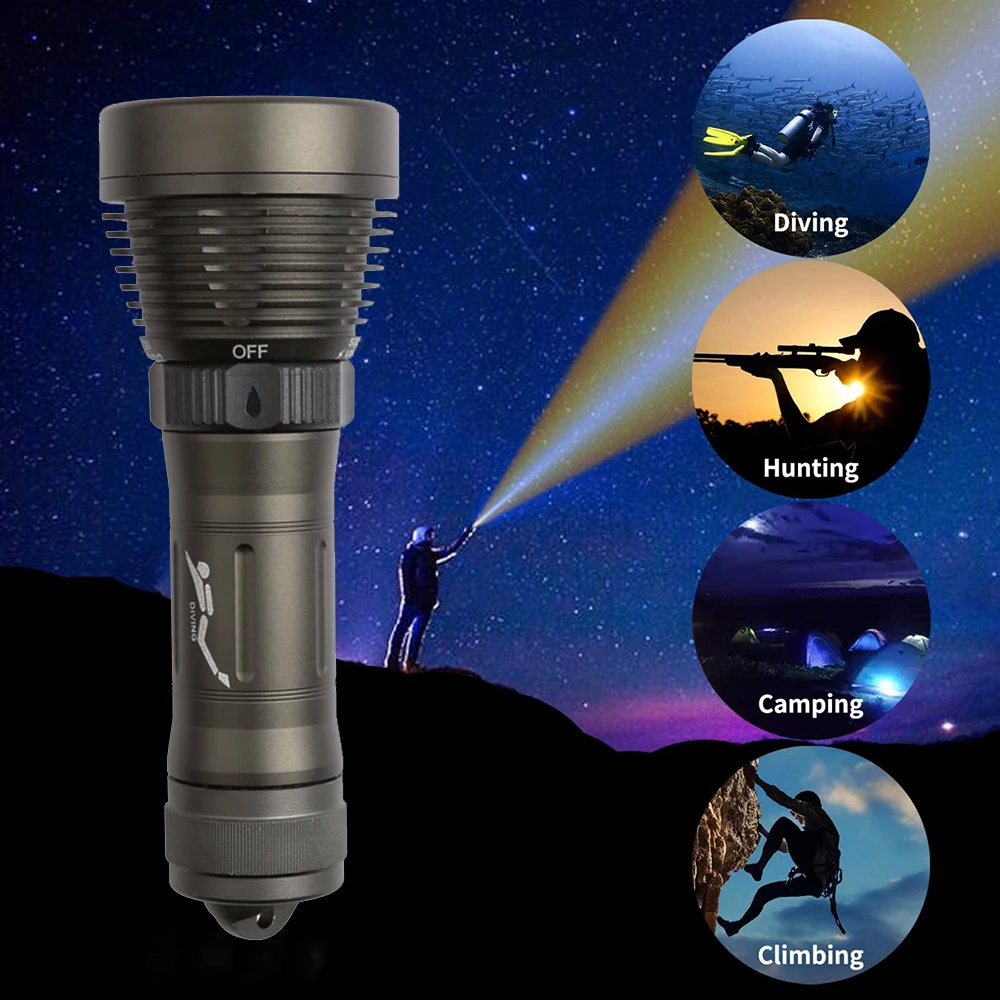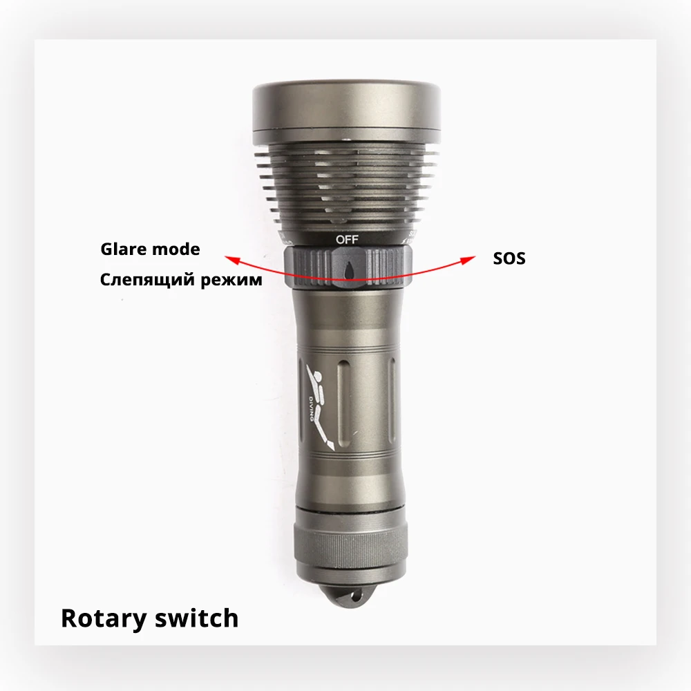 Светодиодный фонарик IP68 для дайвинга, мощный светодиодный фонарь для дайвинга с поворотным выключателем и аккумулятором 1865026650